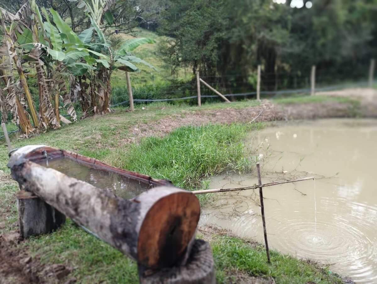Дом целиком - Прекрасный коттедж, расположенный в Апиуне -SC. Большое внутреннее пространство с 1 люксом и 2 спальнями, общей ванной комнатой, кухней и зоной обслуживания. Зона для вечеринок с барбекю, дровяной печью, бассейном и ванной комнатой на открытом воздухе. Большой сад с фруктовым садом (собирайте ягоды прямо с ног), прудом с рыбой (доступен для рыбалки и местного потребления) и большим количеством свежего воздуха. Наслаждайтесь этим вкусным жильем со своей семьей и/или друзьями, вы не пожалеете об этом. С нетерпением ждем вас!