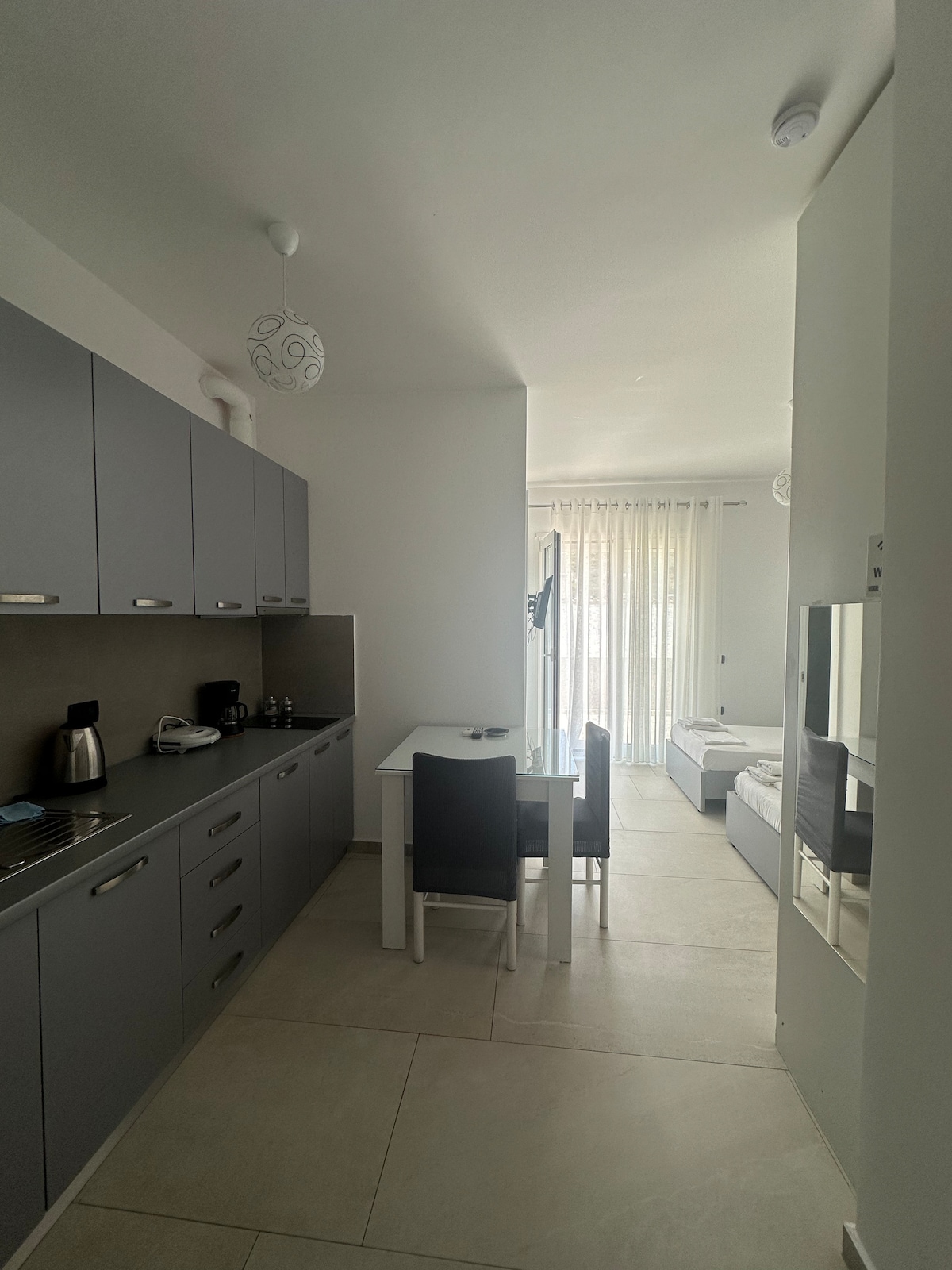 Добро пожаловать в нашу прекрасную студию на вершине холма, расположенную у Uji I Ftohte в Лунгомаре. Насладитесь полностью оборудованной кухней, уютной спальной зоной, современной ванной комнатой и просторным балконом с захватывающим видом на море. Все пляжи, кафе, рынки и рестораны находятся в 5-15 минутах ходьбы. Автобусная остановка, расположенная всего в 4 минутах езды, предлагает легкий доступ к оживленному центру Влёры всего за 35 центов. Самостоятельное прибытие и выезд сделают ваше пребывание еще более удобным.
