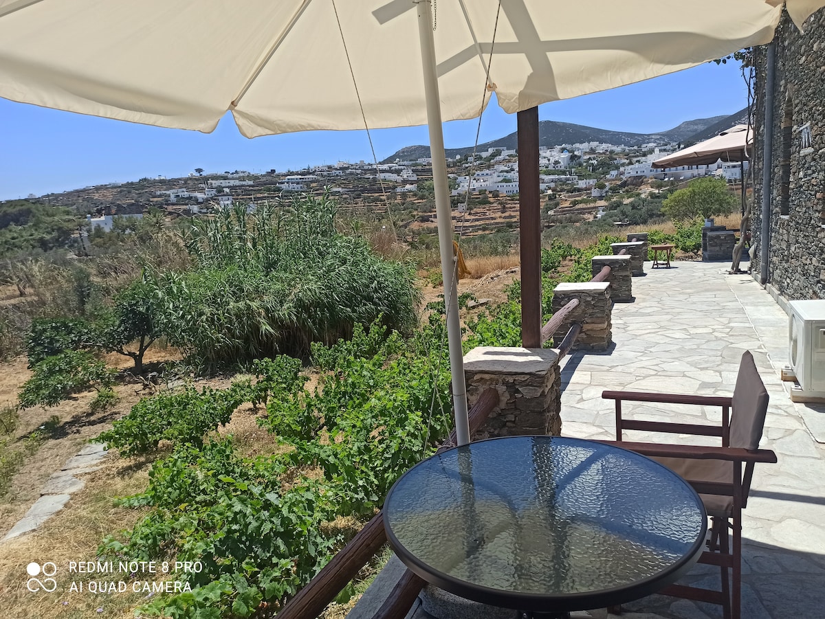 Тихий частный дом с панорамным видом на сверкающее Эгейское море и острова Парос, Иос, Сикинос и Фолегандрос. Уникальный вид на море в Сифносе. В доме есть полностью оборудованная кухня, столовая, две спальни и две ванные комнаты, а также собственная терраса со столовой, с которой вы можете наслаждаться захватывающим видом. У вас есть доступ к частной тропе, ведущей к морю, чтобы насладиться купанием со скал в полной уединенности. Бесплатный Wi-Fi и парковка.
