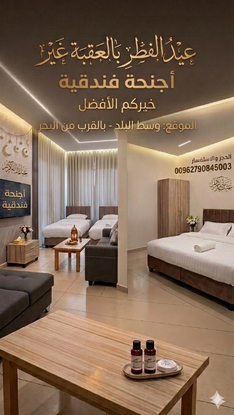 Роскошная квартира в Акабе с видом на бассейн — рядом с пляжем и достопримечательностями Остановитесь в стильной квартире с 2 спальнями, собственной террасой, бассейном и выходом на пляж. Просторная квартира площадью 130 квадратных метров, предназначенная для комфорта и отдыха. ، и высокоскоростной Wi-Fi. Отличное расположение в Сарая-Акаба рядом с отелем Marriott Al Manara, к западу от отеля, в 5 минутах ходьбы от пляжного клуба и аквапарка, рядом с кафе, магазинами и ресторанами. Размещение только для пар, семей или групп девушек.