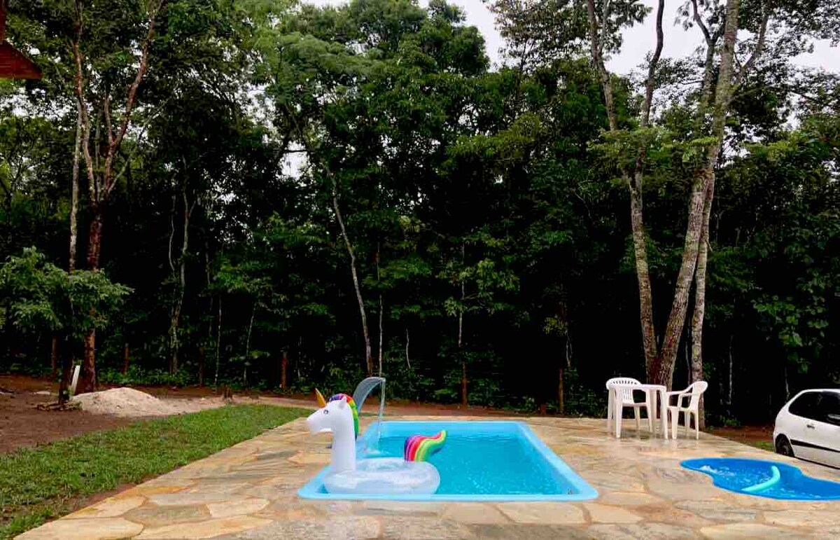 Эксклюзивная территория площадью около 1000 кв. м в окружении зелени. Расслабьтесь в этом месте в 15 минутах езды от Гоянии , легкий доступ, у вас будет уединение, тишина среди природы и много, много комфорта. Ингредиенты, которые делают шале Apoena уникальным опытом недалеко от столицы Гояны, для тех, кто любит отдохнуть от шума, и иметь комфорт камина (в помещении и на открытом воздухе), качественного Wi-Fi (Starlink), ванны, спа-салона и проектора, чтобы посмотреть ваши фильмы и сериалы в стиле.