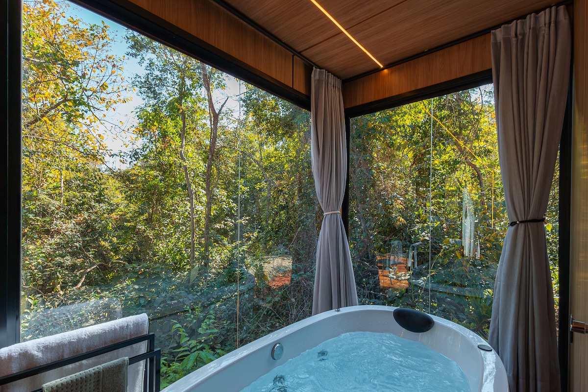 Casa Container в лесу, уютное убежище, где встречаются природа и комфорт. Идеально подходит для желающих отдохнуть и познакомиться с природой. В дополнение ко всем удобствам в помещении на открытом воздухе у нас есть бассейн с подогревом со стеклянным фасадом, камин, лесная терраса и песчаный корт. Эксклюзивный доступ к Рио-дас-Альмас и Камино-де-Кора. Отличное расположение, легко добраться и очень близко к историческому центру Пиренополиса. @jungleboxpiri