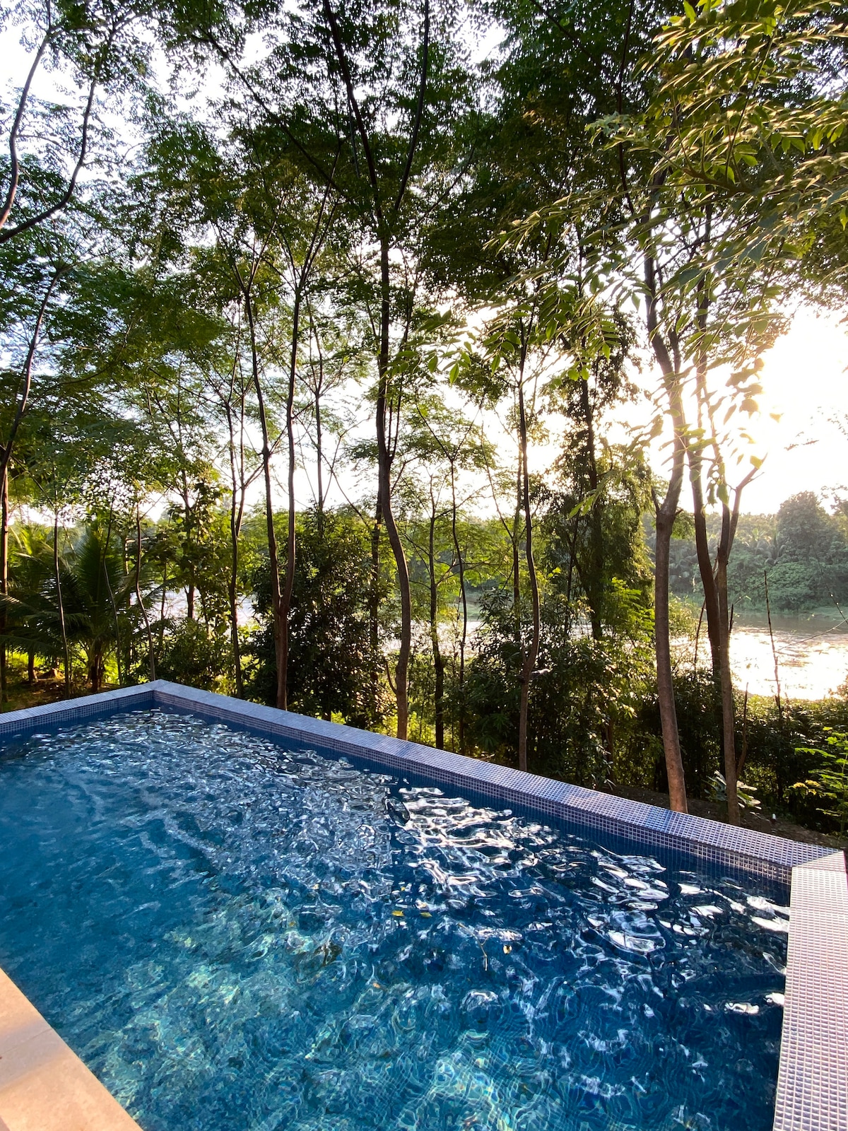 Sri Tulasi Eco Farm Stay - это красивая органическая ферма площадью около 2 акров, и этот деревянный дом с частным бассейном с пресной водой и идеальным видом на реку делает ваше пребывание незабываемым. Очень удобная роскошная кровать размера King size, огромный балкон и все это на коленях природы. Из одной стороны открывается вид на реку, из другой стороны открывается вид на лужайку. Когда дело доходит до занятий, поиграйте в бадминтон босиком, искупайтесь в нашем пресноводном бассейне или просто искупайтесь в реке Сарадха, крикет, рыбалка и садоводство.