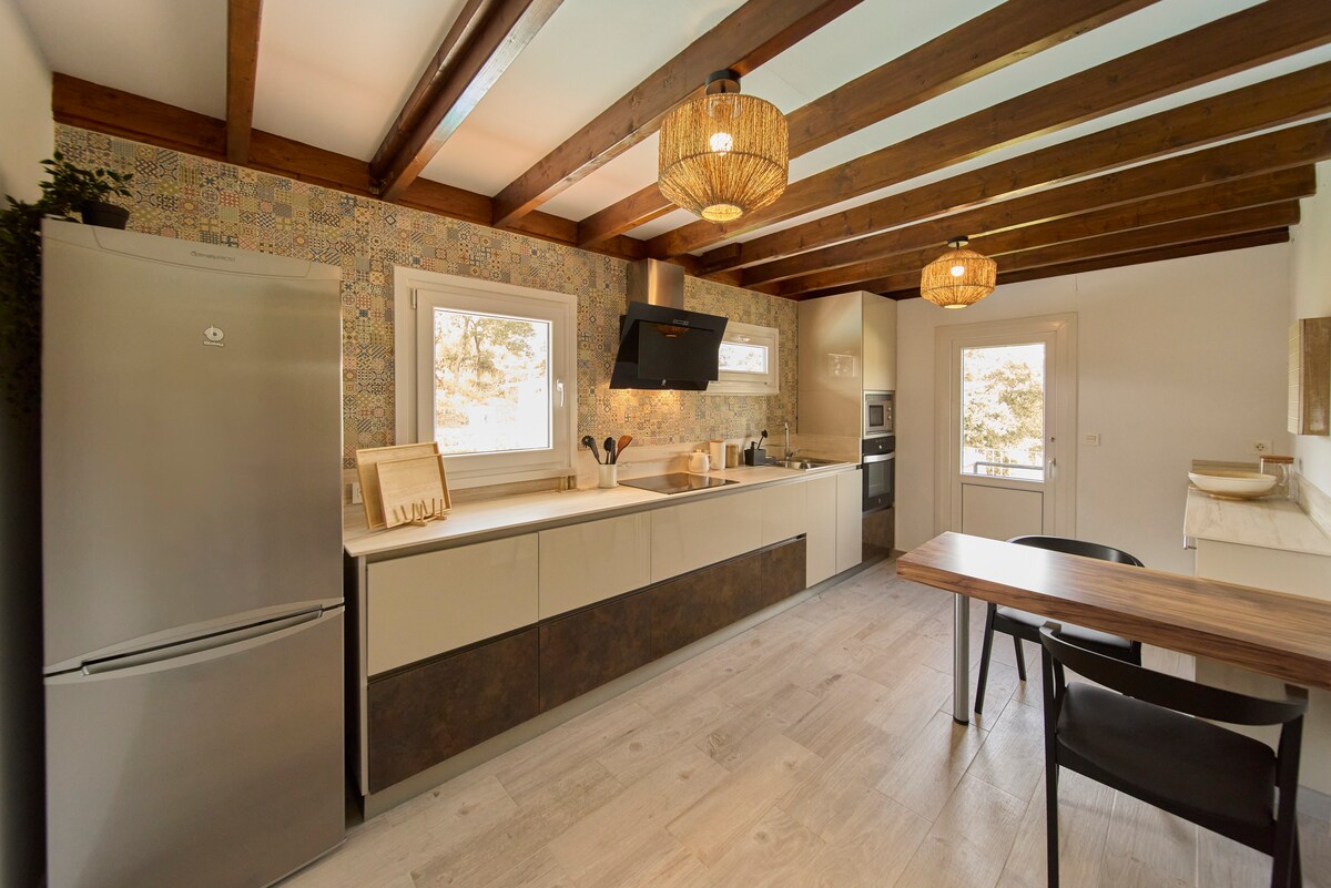 Красивый коттедж, деревенский декор, уютно. В распоряжении гостей 2 спальни с двуспальной кроватью и 1 спальня с двухъярусными кроватями (рекомендуется для детей), гостиная, оборудованная кухня и 2 ванные комнаты, одна из которых в главной спальне. Дом расположен в двух минутах от деревни, где можно найти супермаркеты, аптеки, медицинский центр, рестораны и все услуги. Имеется собственная парковка. Кроме того, здесь есть гамаки для загара и барбекю.