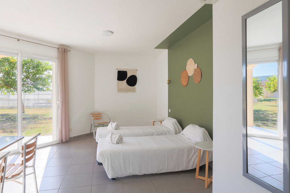 Полностью оборудованный коттедж на 4 человек. 1 отдельная терраса 1 полностью оборудованная кухня. 1 гостиная, совмещенная с главной спальней, с телевизором (есть аккаунт Netflix), Wi-Fi, рабочей зоной, 1 двуспальной кроватью. 1 просторная ванная комната с туалетом. 1 спальня с 2 односпальными кроватями и раскладной кроватью. Собственная парковка. Общий сад. Общий наземный бассейн с июня по сентябрь Предоставляются постельное белье и полотенца. детский набор по запросу (пеленальный коврик, стульчик, кровать, ванна, коляска 0–15 кг)