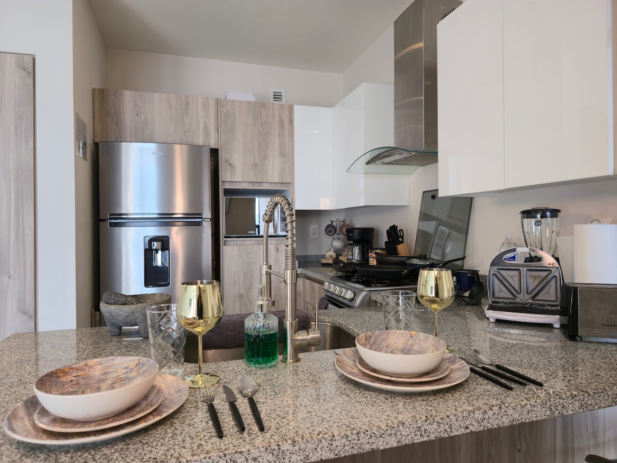 Наслаждайтесь просторной, современной и идеально расположенной квартирой. Это идеальный выбор для семей, групп, деловых путешественников или тех, кто ищет комфорт и безопасность во время пребывания в Монтеррее и Гваделупе. Район тихий и безопасный, отсюда можно быстро добраться до главных проспектов, торговых центров, ресторанов и таких важных мест, как стадион BBVA, парк Фундидора, арена «Монтеррей», выставочный центр Cintermex и собор Ла-Фе. Идеально подходит для отдыха, работы или знакомства с городом. Будем рады приветствовать вас.