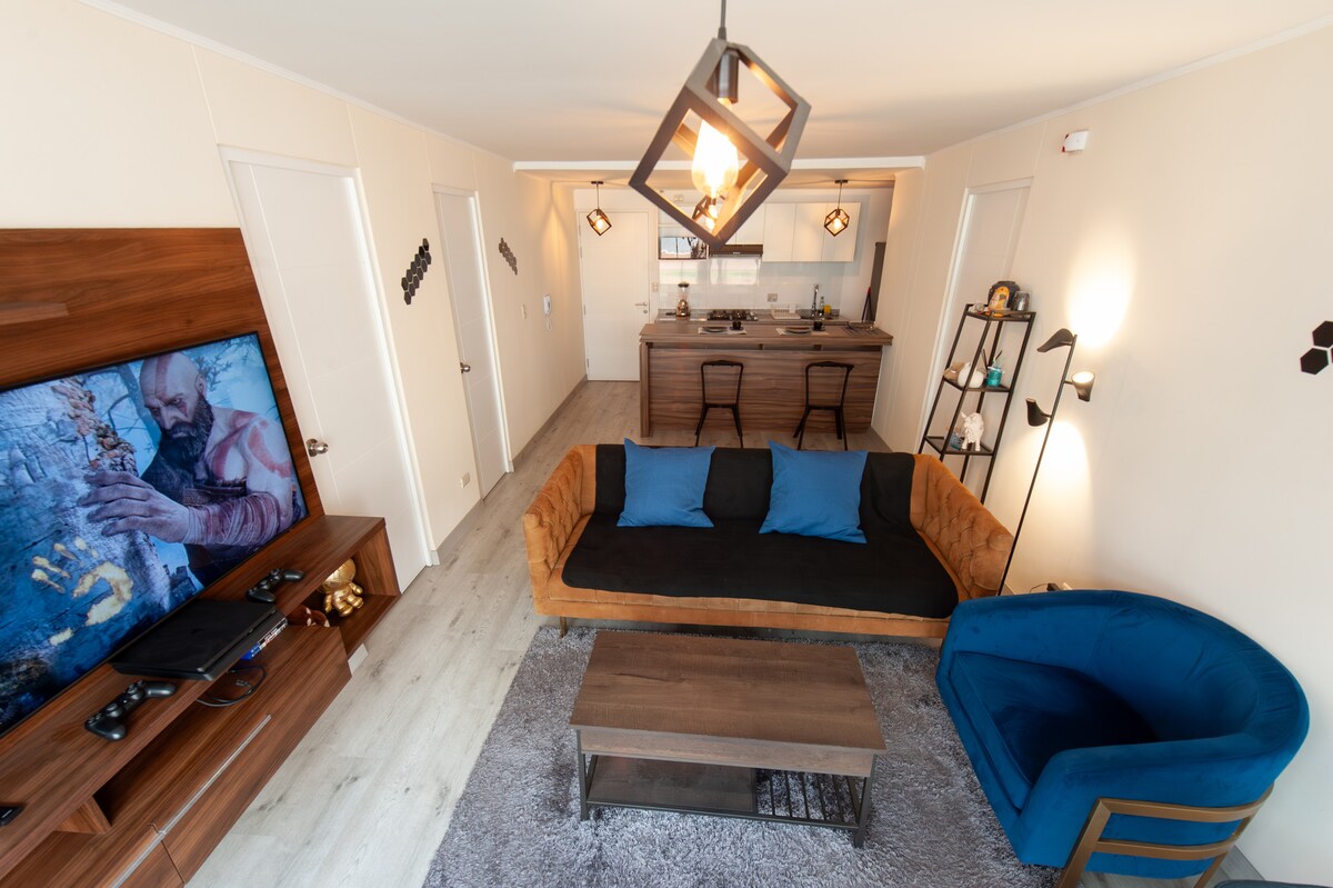 Вас ждет незабываемый отдых в центре Каймы! Это идеальное жилье на 4 человек с 2 спальнями и исключительным дизайном. В этой эксклюзивной квартире вы найдете быстрое подключение к Интернету через Wi-Fi, зарядные устройства для устройств iOS и инновационный декор. Насладитесь близостью к площади Кайма и главным торговым и финансовым центрам. Тренажерный зал, пилатес, безопасные детские площадки и многое другое. Вас ждет идеальное и безопасное пребывание в Арекипе!