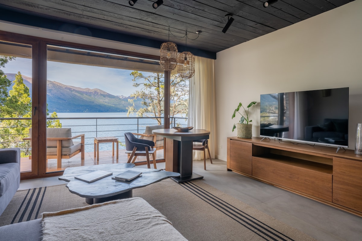 Теплая каюта в загородном стиле на берегу озера Науэль Хуапи с джакузи, дровяной печью и террасой. Студия создана для отдыха и романтики с видом на восход солнца и восход луны над озером. Умный телевизор и ОПТОВОЛОКОННЫЙ интернет с Wi-Fi для работы. Китчинет со всем необходимым, включая кофемашину со сладким вкусом. Сейф для защиты ваших ноутбуков при ходьбе. Ванная с туалетом. Бассейн, пинг-понг. Пляж: каякинг и сапсерфинг. Континентальный завтрак.