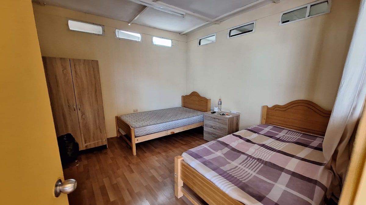 Esta acogedora habitación doble en planta baja ofrece dos camas individuales y baño privado, ideal para quienes buscan comodidad y facilidad de acceso. Ubicada cerca de la playa y de puntos clave como el terminal de buses, centros comerciales y zonas de agroturismo, es perfecta para explorar la ciudad. La habitación cuenta con un ambiente tranquilo y acogedor, ideal tanto para turistas como para quienes viajan por trabajo. ¡Todo lo necesario para una estancia cómoda y bien conectada!