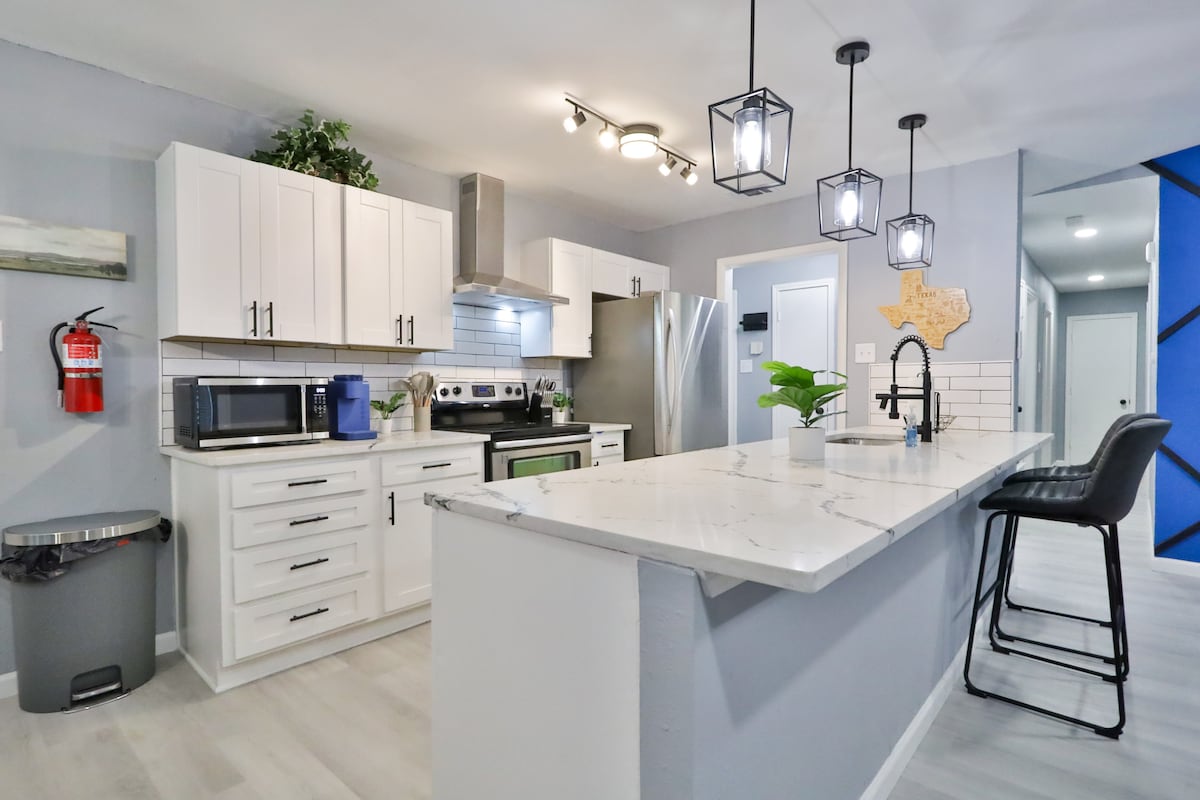 Остановитесь в стильной и комфортабельной недавно отремонтированной квартире в Арлингтоне! Прогулка до стадиона AT&T и всего в 1 миле от Globe Life Field & Park, рядом с UNT & Six Flags. Просторная квартира с 1 спальней, роскошной кроватью, кожаным диваном, полностью оборудованной кухней с гранитными столешницами, обновленной ванной комнатой и 3 большими шкафами. Профессионально убранное и тщательно обслуживаемое жилье — идеальная отправная точка для мероприятий или осмотра достопримечательностей. Нужно больше места? Просто скажите!