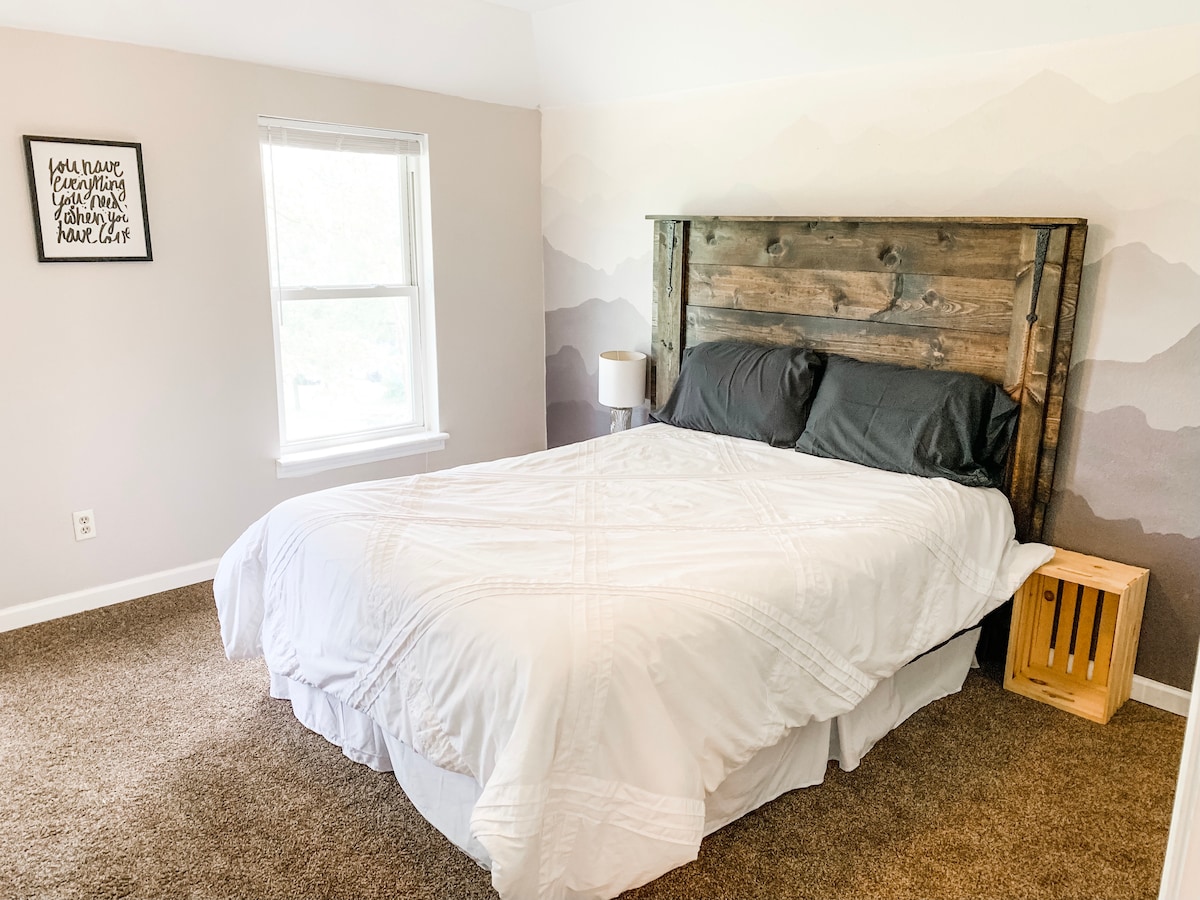 Наслаждайтесь спокойствием и тишиной в нашем современном доме, расположенном в уединенном месте всего в 5 минутах от центра Сент-Луиса. Бесплатная бутилированная вода, континентальный завтрак (упакованные кексы) и бутылка вина порадуют вас в момент прибытия. Расслабьтесь в нашем роскошном многофункциональном душе + матрас с эффектом памяти. Проверьте свои навыки игры в гольф на нашем живописном тренировочном поле или расслабьтесь у потрескивающегося открытого костра. Доступны дополнительные пакеты для спа-процедур и особых случаев. Частная внеуличная парковка.