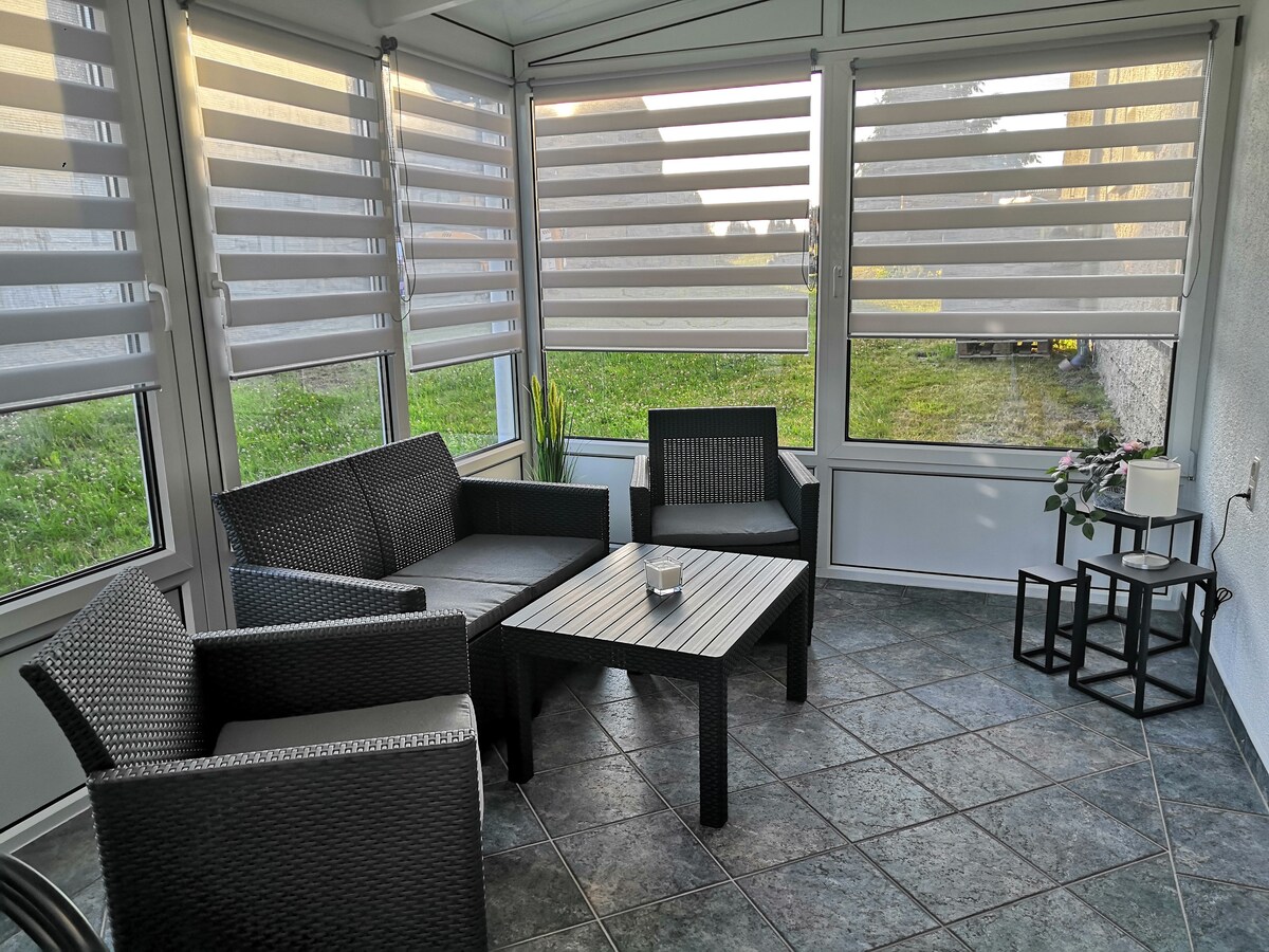 Квартира расположена на краю Саксонского национального парка Швейцария. Идеальное расположение для любителей пеших прогулок, велосипедистов и людей, которые любят и ищут тишины и покоя. Стильно меблированная квартира для отдыха с невероятно прекрасным видом на саксонскую Швейцарию и Восточные рудные горы. Конечно, есть запираемый велосипедный сарай с зарядкой для вашего электровелосипеда и парковка для вашего автомобиля.