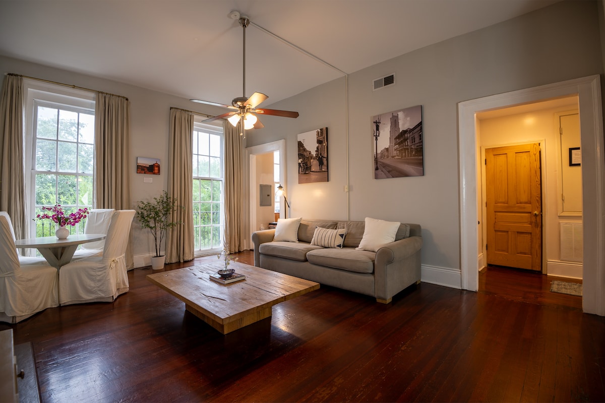 Остановитесь в прекрасно отреставрированном таунхаусе 1840-х годов в центре района Уэрхаус, спроектированном известным архитектором Джеймсом Харрисоном Дейкином. Эти элегантные апартаменты с 1 спальней и 1 ванной комнатой сочетают в себе исторический шарм и современный комфорт. В них есть высокие потолки, деревянные полы и кровать California King с эффектом памяти. Прогуляйтесь до лучших ресторанов, таких как Emeril's, Peche, Sofia и Cochon, и насладитесь быстрой 5-минутной поездкой на Uber до Французского квартала.