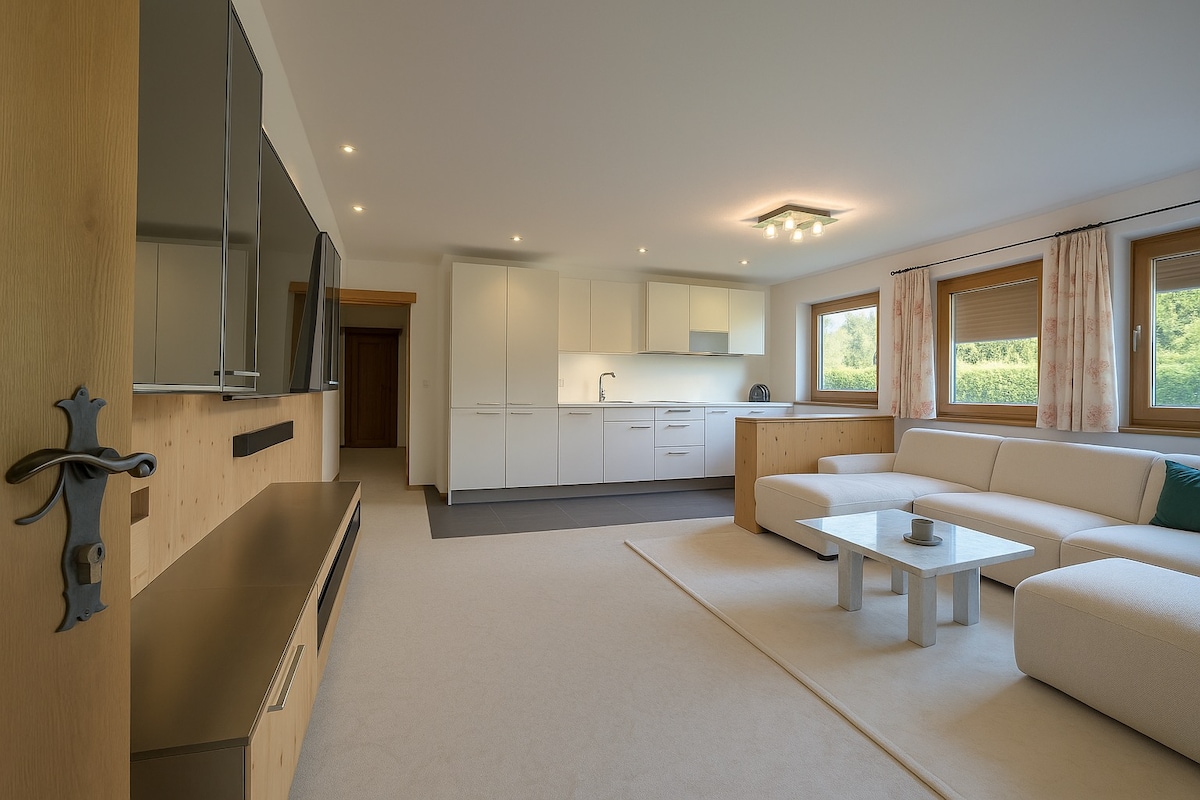 Добро пожаловать на солнечное плато: эксклюзивная квартира с видом на горы в Миминге Насладитесь чистым отдыхом и альпийской роскошью в нашей современной квартире на идиллическом солнечном плато Миминг. Расположенный у живописного ручья Кребсбах и окруженный захватывающей природой, это идеальное место для любителей природы, искателей покоя и активных исследователей.
