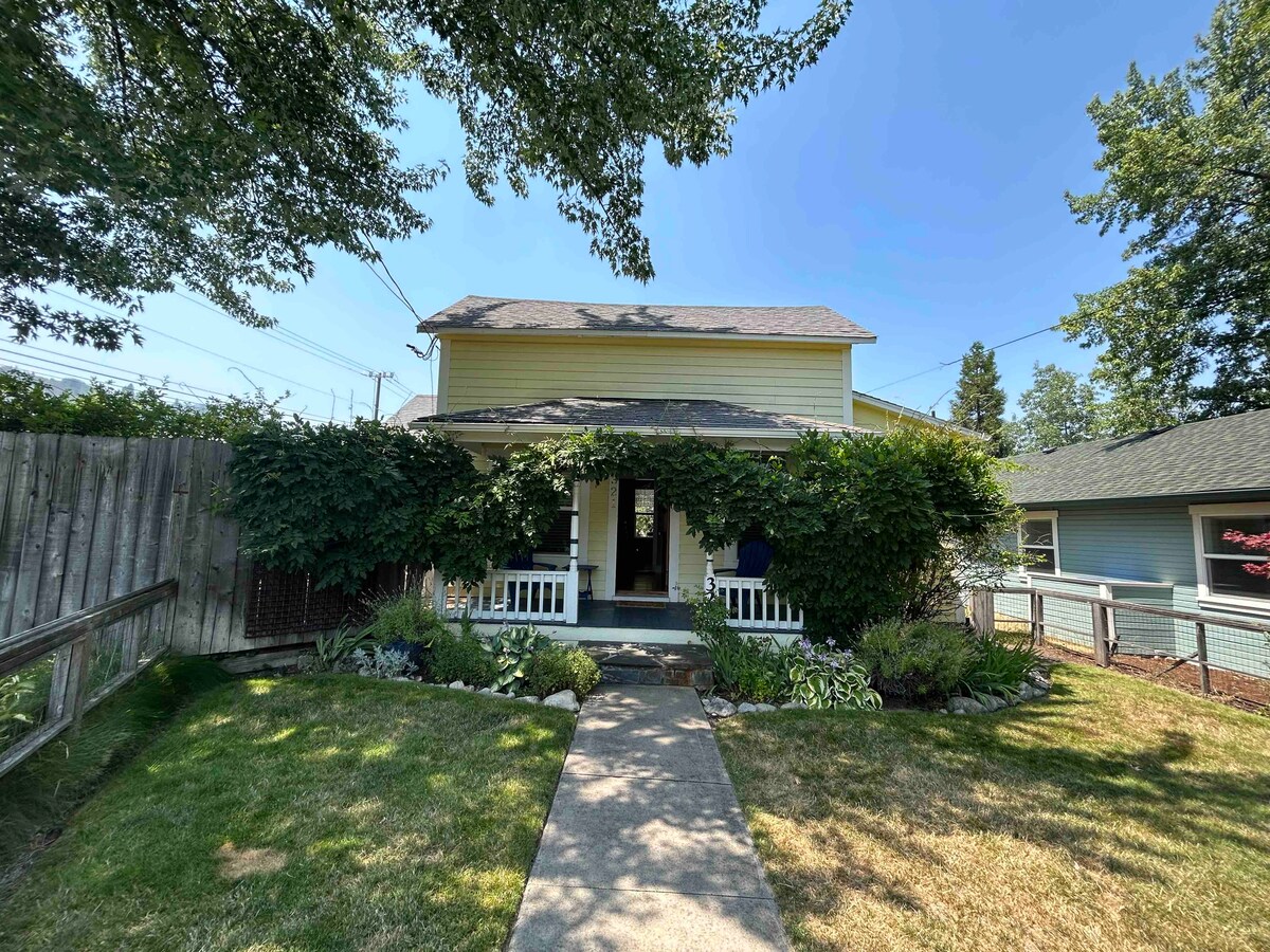 Очаровательное бунгало на переулке в историческом районе железной дороги. Прогулка 93 баллов. Погрузитесь в сердце Ашленда. 5 минут пешком до центра города, 8 минут пешком до театров Шекспира и Кабаре. До пабов, ресторанов, кофеен, спа-салонов, рынков, кинотеатра, парка Лития, японского сада и троп можно дойти пешком за 5-12 минут. Хорошая велопрогулка до виноделен в 15 минутах езды или в 30 минутах езды до горы. Ашленд для катания на лыжах, пеших прогулок, езды на велосипеде и других приключений.