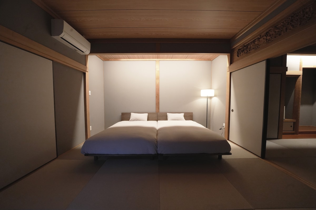 川と川が合流する石垣の上にあり、木々に囲まれた古民家の中をリノベーションした、素泊まり一軒宿となっております。 見える範囲に建物はなく、川の音、鳥の鳴き声、自然との一体感をお楽しみいただけ、水道も湧水(水質検査済)となっております。 季節によって、川遊びや、かっぱ滝を目指して、宿の横の川を行き交う方々もいらっしゃいます。 お天気が良ければ、川遊びはもちろん、ご持参いただいた食材でBBQ、 焚き火も楽しみいただけます。 (火の取り扱いには充分お気をつけください。) 雨の際は、お部屋の中にある囲炉裏にて、ご持参された食材を炭火でお楽しみいただいたり、調理器具、レンジ、食器類も備えておりますので、ゆっくり川音を聴きながらの調理はいかがでしょうか。 川沿いの散歩道を上に進むと、150m程先に「かっぱ滝」もございます。 夕食等の飲食物は、チェックイン前にご用意ください。スーパーまでゆっくり車で20分かかります。 古民家の400m手前より、道が未舗装で狭く、わかりづらくなっておりますので、 「camuつばき山」までお越しいただけましたら、私達が、ご案内させていただきます。