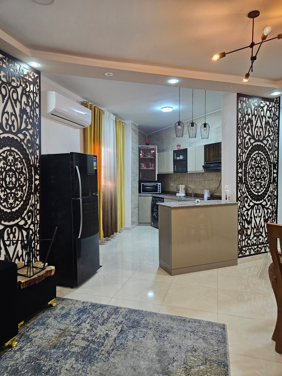 Моя квартира расположена на первом этаже с частным входом в небольшую зону барбекю, имеет два отдельных входа, главную спальню с собственной ванной комнатой и еще одну спальню-близнец, вторую ванную комнату, большую зону приема с плоским экраном, спутниковое телевидение, обеденную зону с высокотехнологичным обеденным столом на 6 человек, американскую кухню открытого плана с полными столовыми приборами и высокотехнологичным оборудованием . Квартира полностью оборудована кондиционером и оснащена ежедневной уборкой бесплатно.