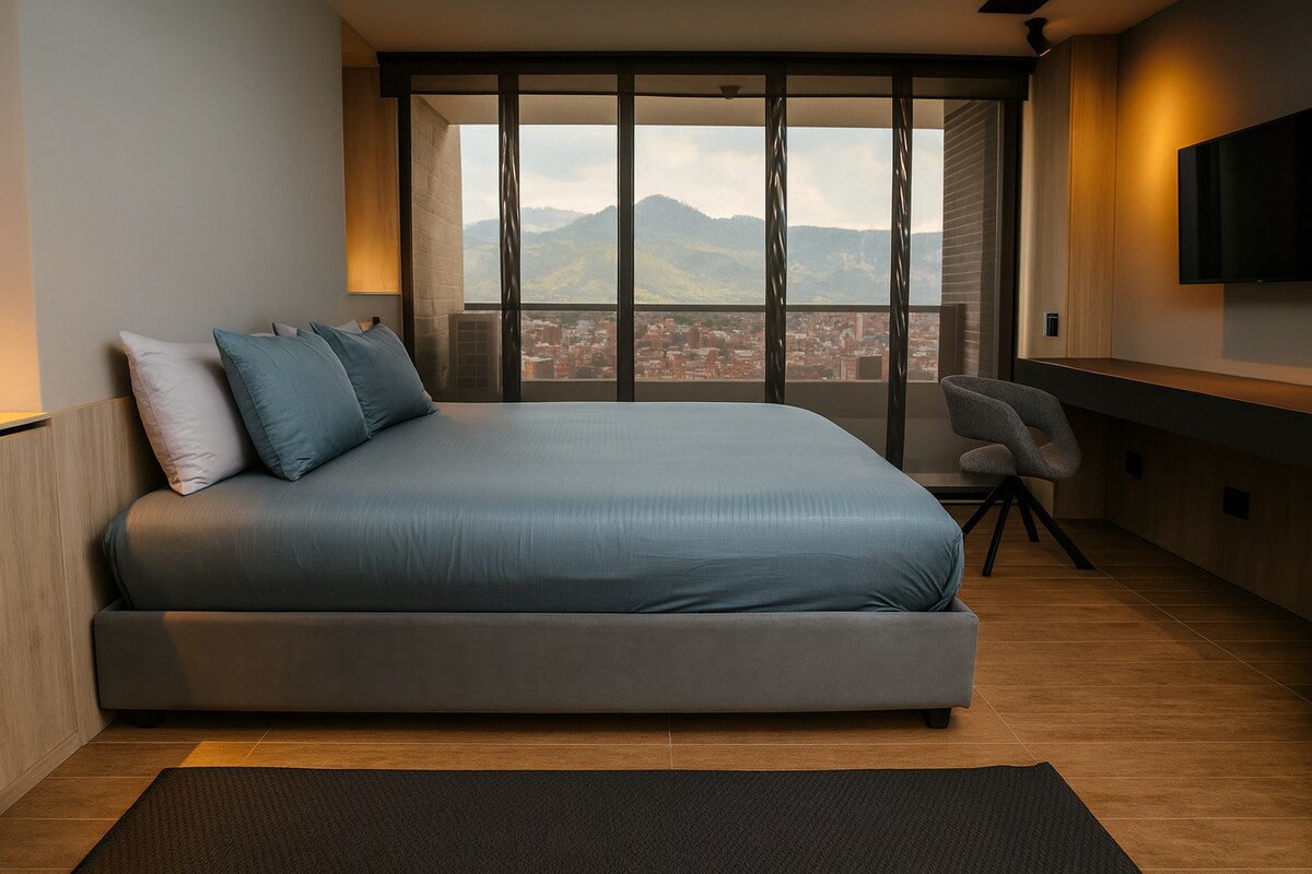RECENTLY RENOVATED -High-speed internet great for remote work -Brand new A/C -Fully renovated Industrial design apartment -King size bed -Breathtaking views of Medellín (trust me, worthwhile to stay here) -19th floor -Unbeatable location in Poblado near to Provenza and Lleras Park -Modern amenities -Spacious living area -Smart TV x 2 -Fully equipped kitchen -Washer & Dryer Tower -Pool -Gym -Coworking space -Restaurant inside the building -Private parking -Self check-in -24/7 Security