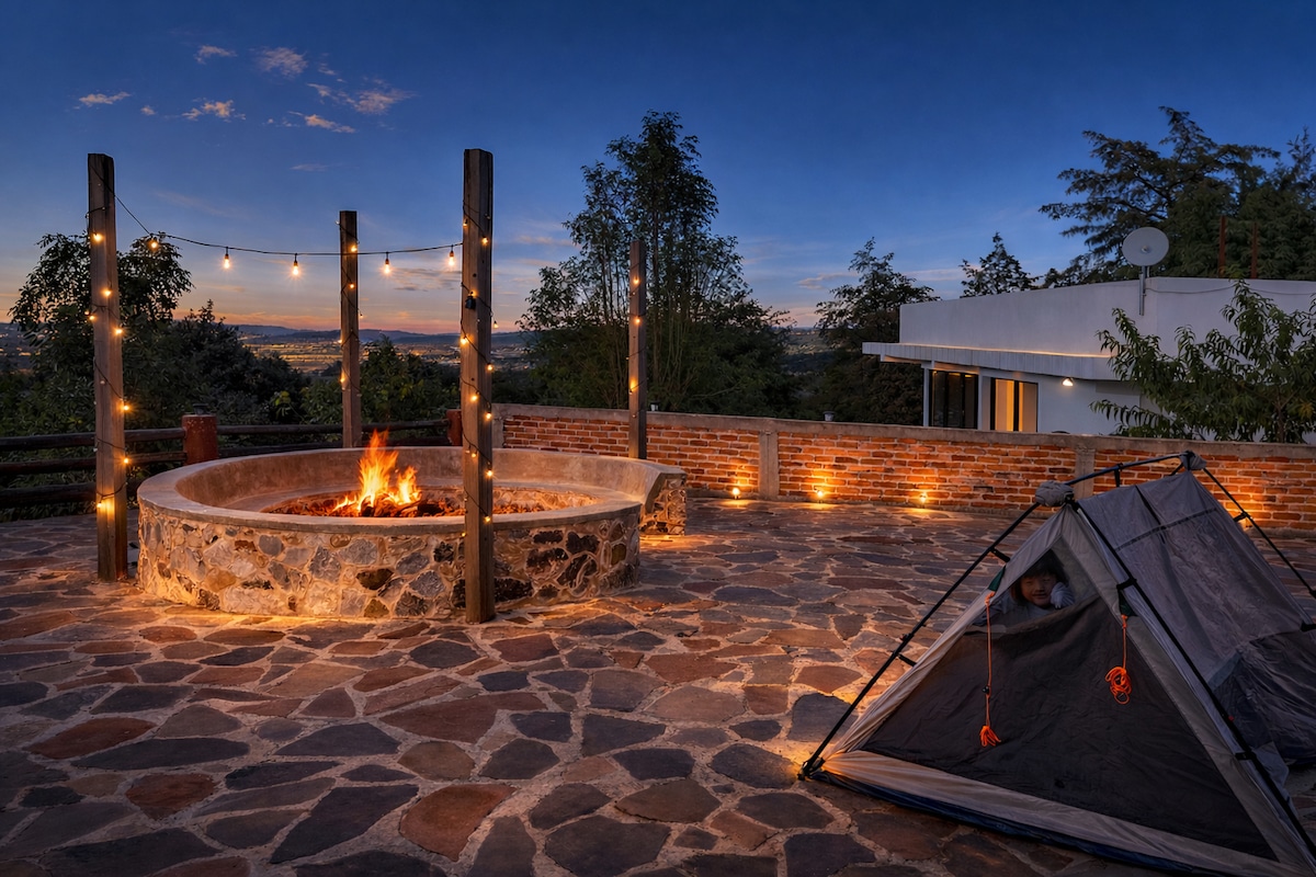 Welcome to Fun and Relaxation in the Forest Just 15 minutes from Tapalpa, this spacious and cozy cabin offers everything for an unforgettable Giant bouncer trampoline swings and slide Kids’ games and arcade machine Board games Grass 4x4 soccer field Grill and fire pit area 65” screen with streaming access Satellite Wi-Fi European memory foam mattresses and pillows Electric heaters Perfect for relaxing and creating unforgettable memories in the heart of nature.