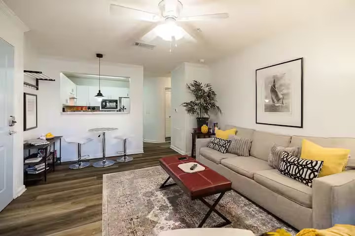 2 спальни с собственной ванной с туалетом (2 спальни/2 ванные комнаты). Полностью оборудованная прачечная со стиральной машиной и сушилкой. Полностью оборудованная кухня, патио с экраном. Гостиная с телевизором. Менее 1,5 мили до стадиона Сэнфорд. Квартира расположена всего в нескольких минутах от центра Афин. Легкий uber и lyft. Закрытая территория!