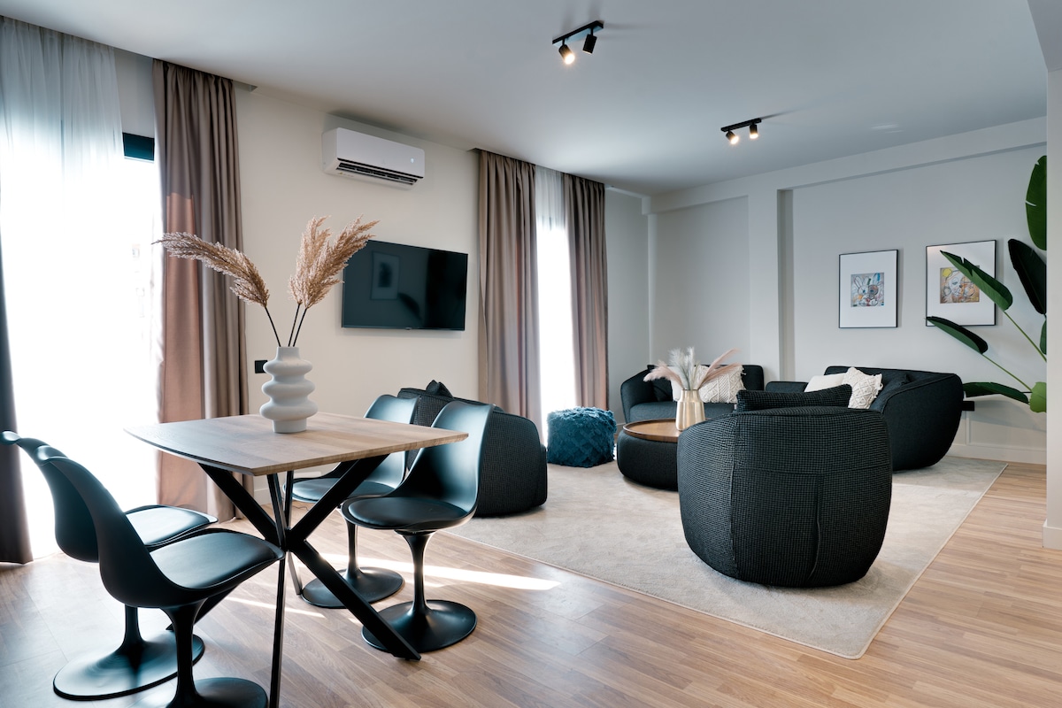 Добро пожаловать в эту стильную и современную квартиру на четвертом этаже, расположенную в центре Кипсели, в нескольких шагах от магазинов, кафе и ресторанов. В распоряжении гостей две спальни, одна из которых главная, полностью оборудованная кухня для приготовления вкусных блюд, удобная гостиная и телевизор со Smart TV. Идеально подходит для пар, семей или деловых гостей. Квартира является частью бутик-здания с общими удобствами, включая тренажерный зал, частное джакузи, сауну и конференц-зал, предлагая комфорт и роскошь для вашего пребывания в Афинах.