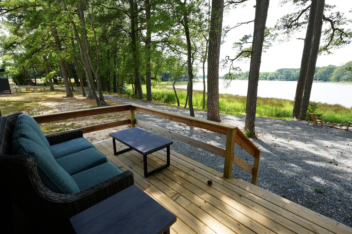 Calender open for super deals on weekly Summer rentals 2026. Beautiful space in and out! Vacation efficiency, situated right on the bay with views of Assateague across the way, Chincoteague ponies are on premises. Coastal charm at its finest, there are 2 queen bedrooms and livingroom/breakfast room, all with a view. No full kitchen. Microwave, toaster, small fridge, stocked Keurig coffee and tea station and shared outdoor cooking area, sink and bbq grill.