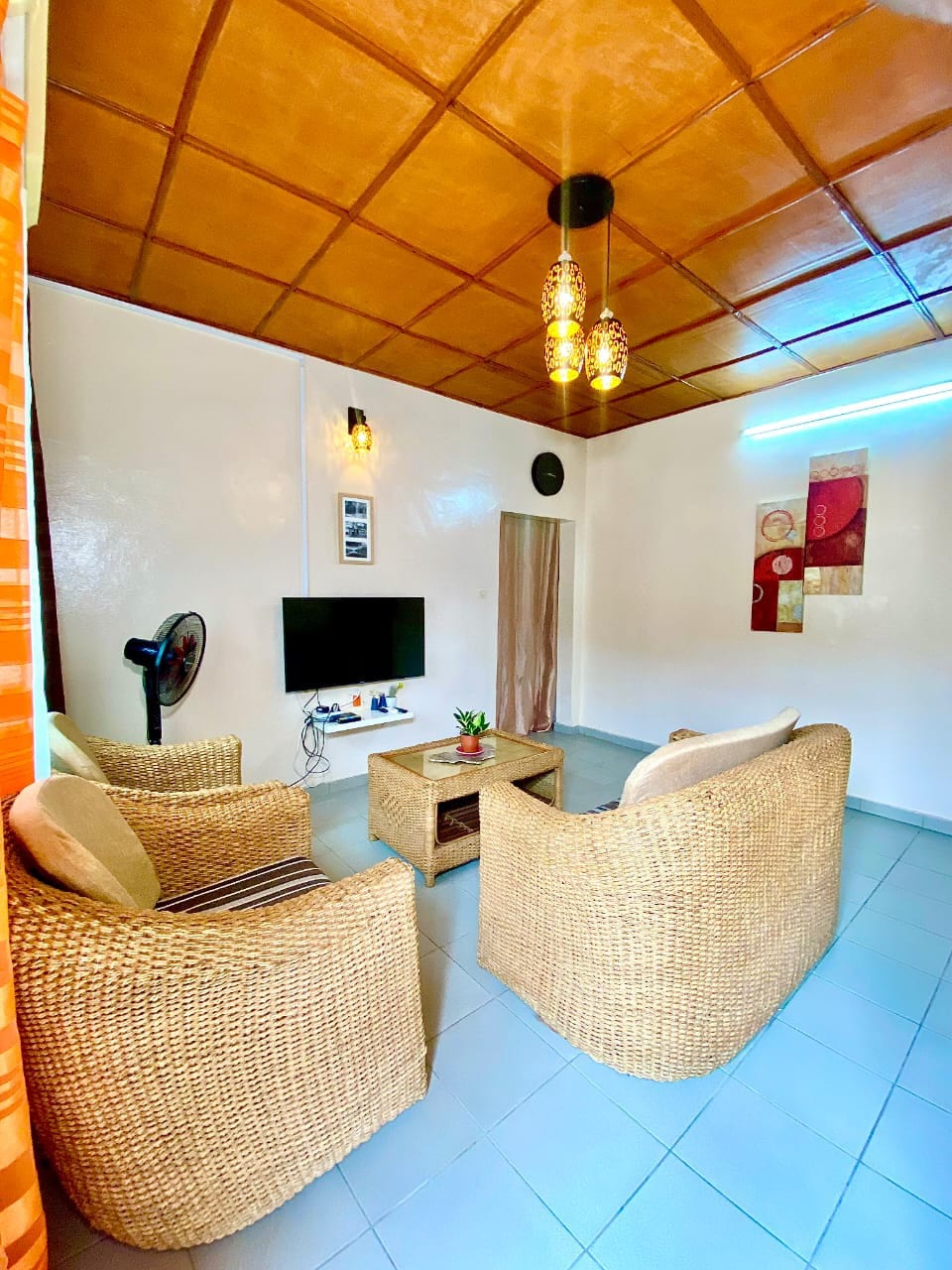 Cocotier 🏡 Residence – Меблированное жилье с отдельным входом в Абоме-Калави. 🛏️ 1 спальня с кроватью на 3 человек, 🛋️ гостиная со Smart TV + высокоскоростной Wi-Fi, 🍳 полностью оборудованная кухня, 🚿 ванная комната с водонагревателем, 🌿 терраса с садовым столом. Комфорт, уединение и автономия для краткосрочного или длительного пребывания.