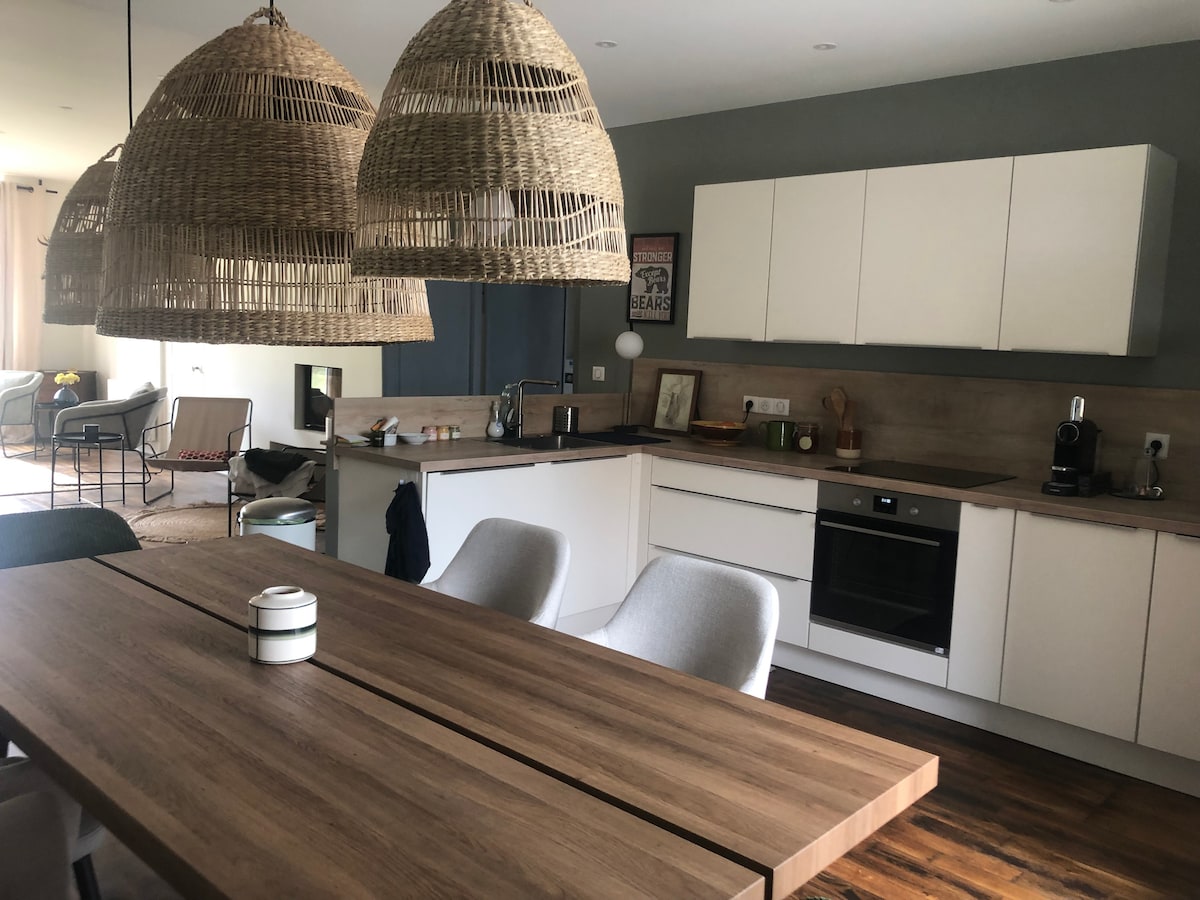 Небольшой дом с кондиционером, в нем могут разместиться 4 человека. Рядом 50 м2, 2 спальни, 2 кровати 160 см, 2 ванные комнаты, 2 ванные комнаты, 2 ванные комнаты, 2 туалета, гостиная с мини-кухней, микроволновая печь, холодильник, холодильник, посудомоечная машина. Высокоскоростной Wi-Fi. Терраса с закрытым юго-западным садом площадью 23 м2. Книги, игры, нет телевизора. Терминал электромобиля от 5 до 7,2 кВт в зависимости от модели, тип 2 штепсельная вилка должна быть оплачена на месте. Возможность закрытой частной парковки для велосипедов и мотоциклов по запросу.