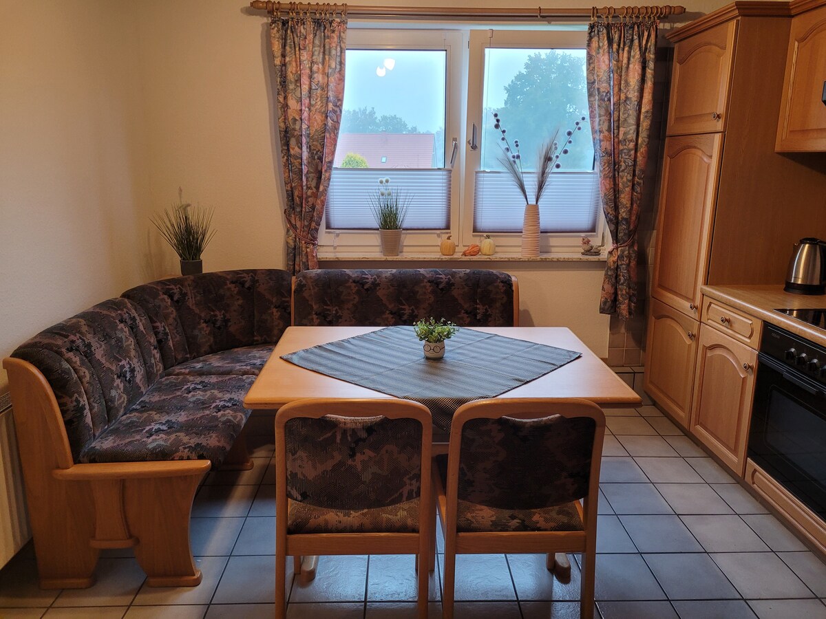 Вы можете ожидать 80 м² большая, уютная квартира для некурящих с собственным Вход. В квартире есть полностью оборудованная кухня и обеденная зона, гостиная и столовая с видом на сад и выход на большую южную террасу. Домашние животные запрещены, телевизор с плоским экраном ( 40 дюймов ), СПУТНИКОВОЕ телевидение. В подвальном помещении - гладильная доска, утюг, стиральная и сушильные машины, готовые для вас. В 2 спальнях по 2 двуспальные кровати. Хозяин Х. Синнен