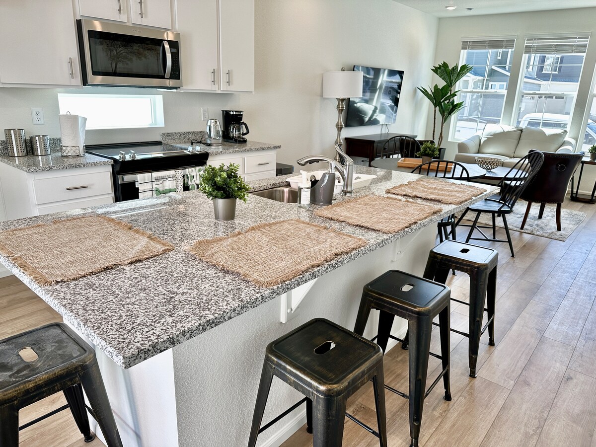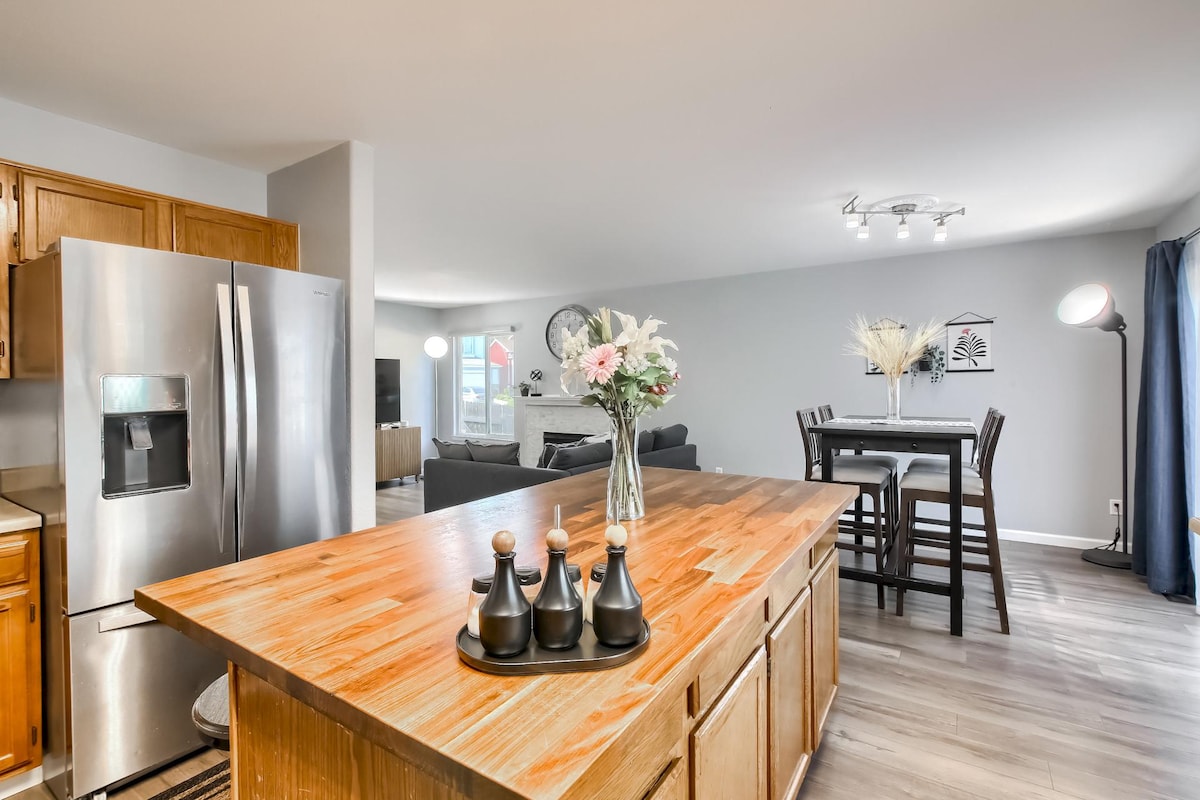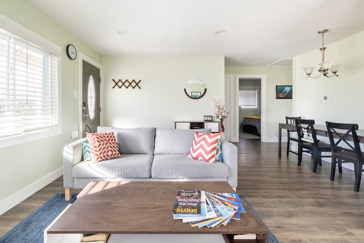 Современный дом с 2 спальнями и 2 ванными комнатами всего в 10 минутах езды от аэропорта Денвера и в 5 минутах езды от курорта Gaylord! Наслаждайтесь открытой гостиной, полностью оборудованной кухней, быстрым Wi-Fi, смарт-телевизором, прачечной и собственным гаражом. Отдохните в тихом, безопасном районе, откуда легко добраться до центра Денвера, парков и ресторанов. Идеально подходит для семей, деловых поездок или веселого отдыха. Забронируйте комфортное проживание в Денвере сегодня! Расслабьтесь или отдохните в большой комнате после дня знакомства с Майл-Хай-Сити.
