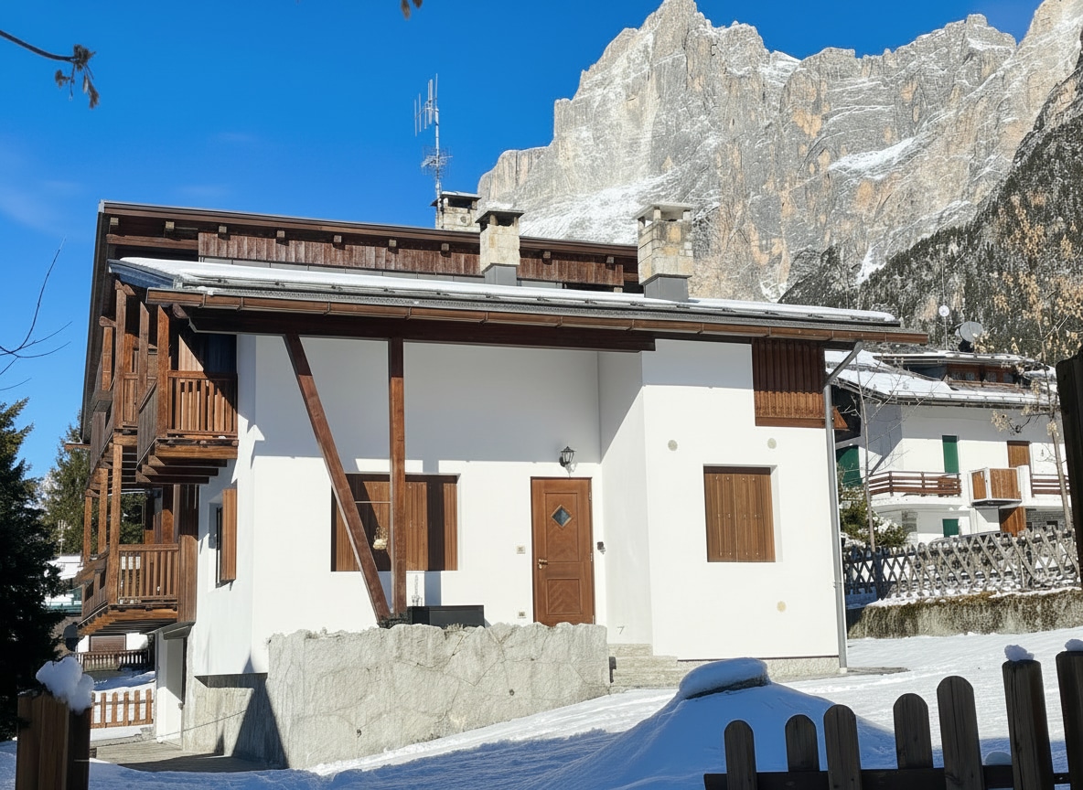 Дом с частным садом и парковкой, 10 мин. от Кортины. Двухуровневое жилье с панорамным видом из гостиной и спальни на верхнем этаже. 2 балкона на верхнем этаже и терраса у входа. Светлая и уютная гостиная с Smart TV и Netflix. 2 полных ванных комнаты, по одной на каждом этаже. Компактная, но оборудованная всем необходимым кухня.