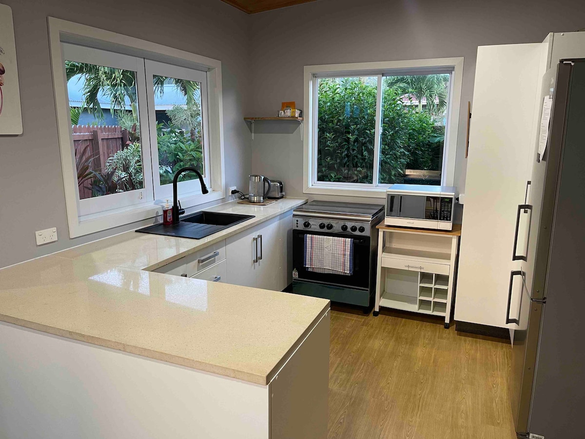 Насладитесь теплом этой современной квартиры-студии, красивым уютным интерьером с полностью оборудованной кухней. К услугам гостей большая частная крытая терраса. Очень тихий тупиковый жилой район, который находится у местного тропического леса с множеством птичьей фауны. Дикие манговые деревья спускаются по небольшому ручью на южной стороне отеля, который вы можете собирать и есть в сезон, у нас есть бананы, лимоны, хлеб, саусеп, лишь некоторые из них на территории, которыми мы с радостью поделимся.
