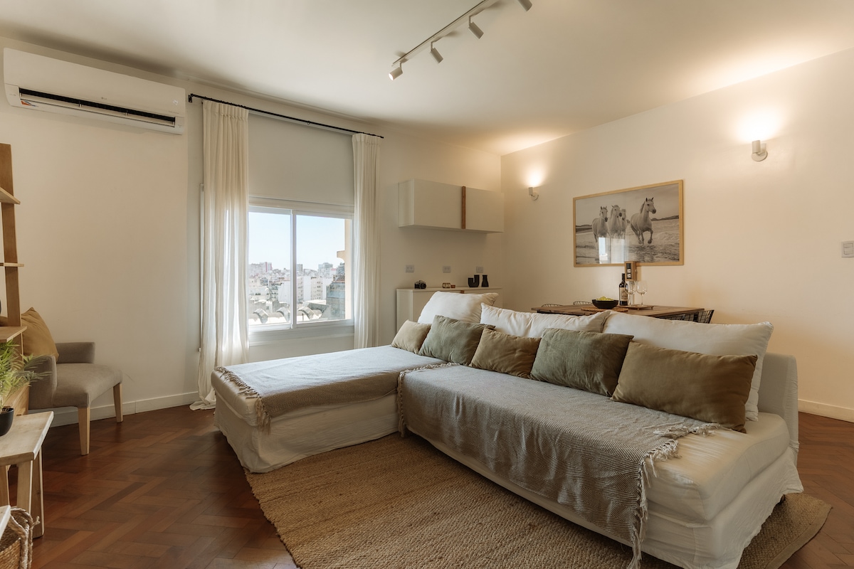 Эта идеальная квартира имеет непревзойденное расположение, в метрах от самых важных достопримечательностей, таких как Каса Росада, обелиск и Калле Флорида, в центре Буэнос-Айреса. Благодаря стратегическому расположению он имеет доступ к широкому спектру транспорта (метро, метро, автобус). Квартира оборудована для кратковременного и длительного пребывания. К услугам гостей кровать размера Queen size, полностью оборудованная кухня-столовая, Wi-Fi, кабельное телевидение и охрана. Это лучший вариант для следующей поездки.