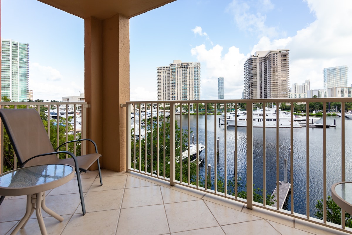 Enjoy a relaxing stay in this inviting 1-bedroom apartment at The Yacht Club at Aventura, a gated resort-style community with 24-hour security. Guests have access to a heated pool, fitness center, BBQ area, tennis courts, 2 pickleball courts, and business center (hot tub currently under repair). Located on the 4th floor, the unit features beautiful marina and garden views and comes fully equipped with 2 LED TVs, cable, washer/dryer, linens, free WiFi, and parking.