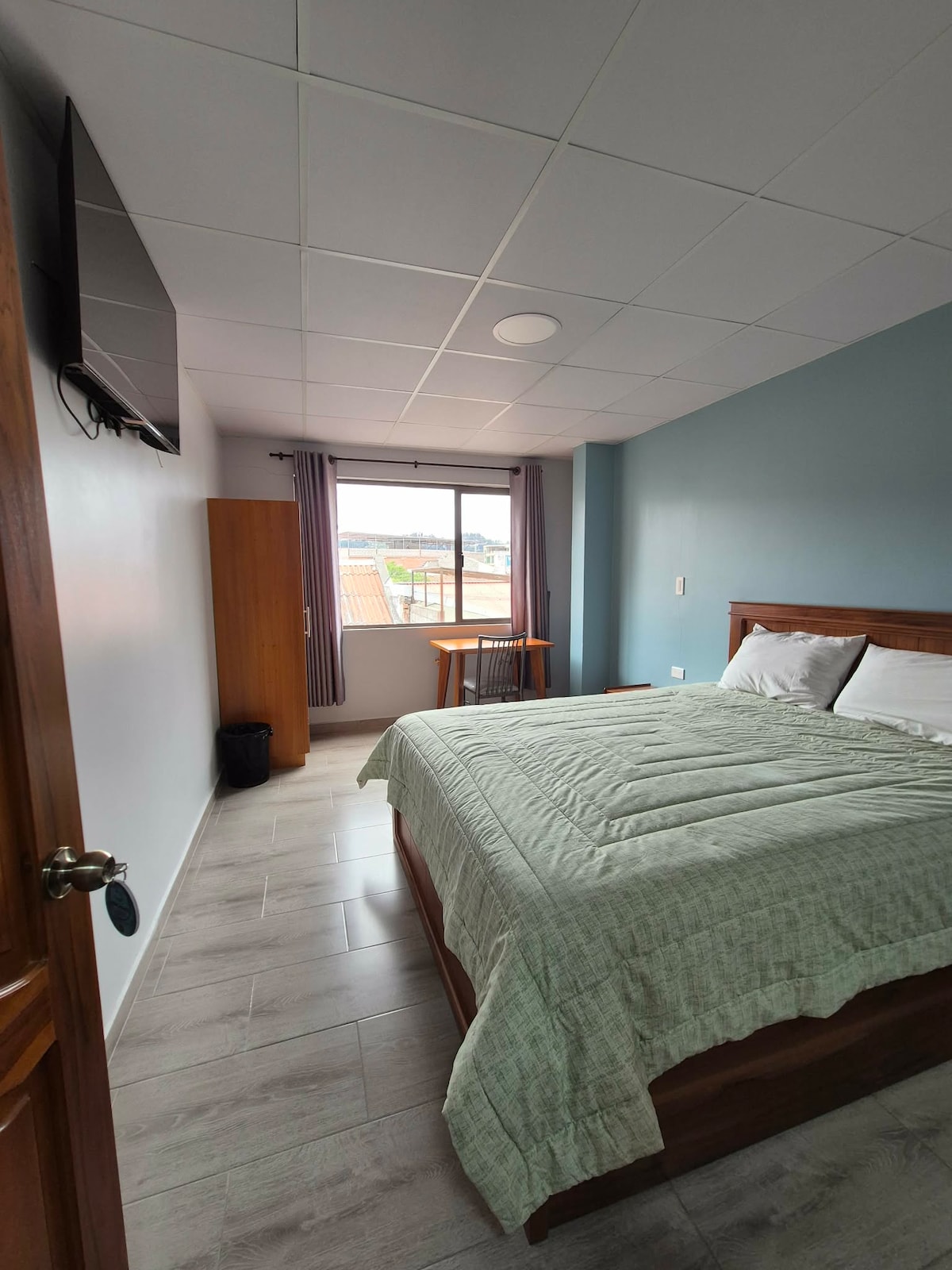 Hermosa habitación con baño compartido ubicada en el Hostal Casa Aida Luz, en pleno centro histórico de Cuenca, a solo una cuadra del Parque Calderón y de la icónica catedral.