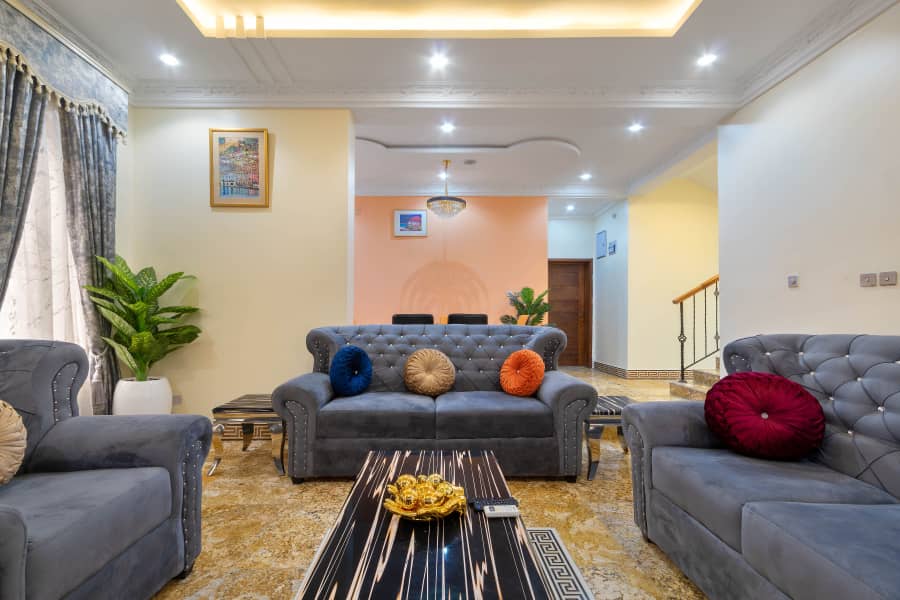 GolfVilla Abeokuta - это красиво меблированная современная вилла площадью 1300 кв. м с 3 спальнями, расположенная на холмах Оке-Мосан, Абеокута, штат Огун. - Телевизор с большим экраном и спутниковым декодером в каждой комнате. - встроенная кухня - стиральная машина; - Wi-Fi; - настольные игры; - частный бассейн. - Настольный теннис - Открытая гриль-станция - Рядом с гольф-клубом Abeokuta - Бесплатная тележка для гольфа - Наружное видеонаблюдение - Электрический забор периметра - 24 часа электричества - Вооруженная охрана - Бесплатный трансфер до железнодорожного вокзала