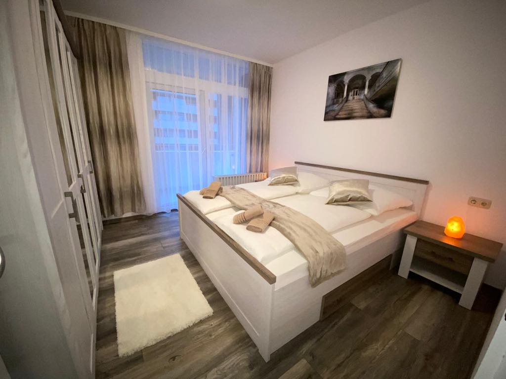 Наслаждайтесь простой жизнью в этом тихом доме в центре города. В модернизированной квартире на 11 этаже, башня 3 с прямым видом на лес, есть все необходимое для комфортного отдыха. Пружинная кровать Box, W-LAn, 2xTV, HIFI-CD, Saua, бассейн, настольный теннис и настольный футбол не оставляют желать лучшего. Перед домом есть бесплатная парковка; до спа-салонов можно добраться за 5 минут! ВНИМАНИЕ: с 9 по 23 ноября Бассейн и сауна закрыты.
