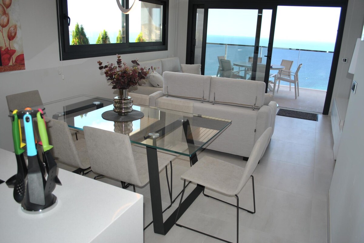 Роскошная квартира площадью 150 м², полностью оборудованная для вашего удовольствия, с 3 спальнями с двуспальными кроватями, мини-кухней, гостиной (с современной отделкой) и террасой площадью 55 м² с панорамным видом на 180°. Насладитесь лучшими видами на Средиземное море в природном анклаве Бенитачель! Включает частный гараж, тренажерный зал, спа-салон, панорамный бассейн и крытый бассейн. 3 минуты на машине до Кала-дель-Морайг и 6 минут от Морайры, рядом магазины и рестораны.