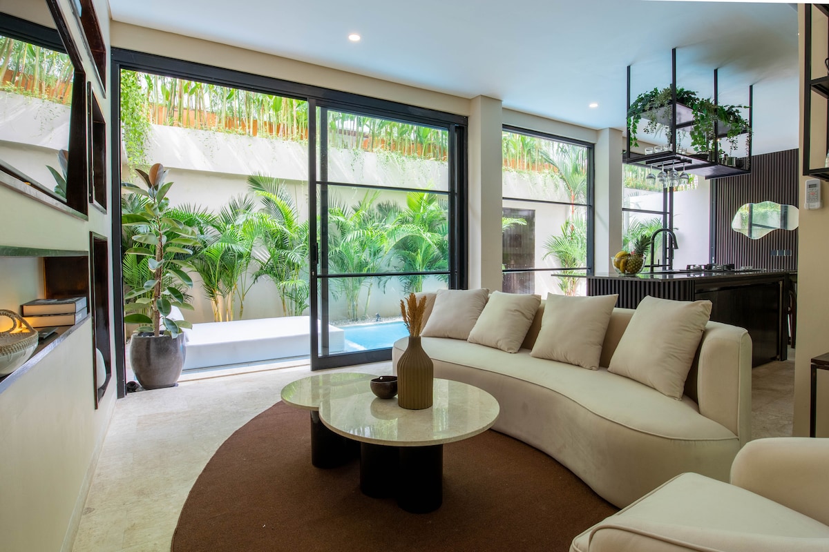 Новая современная и эстетическая вилла Изогнутые края, закругленные арки, белая прохладная атмосфера, теплые деревянные акценты и пышная зелень. Эта вилла спроектирована, построена и поддерживается с заботой, так что вы будете комфортно и стильно отдыхать. Наслаждайтесь пребыванием в тихом и спокойном районе, стратегически расположенном в центре Чангу: — 5 минут ходьбы до пляжа Нелаян, где можно заняться серфингом и полюбоваться закатом. — 2–5 минут пешком до модных ресторанов, тренажерного зала, массажа, маникюра. — 7–10 минут пешком до пляжной дороги Batu Bolong, где можно найти больше еды и развлечений.