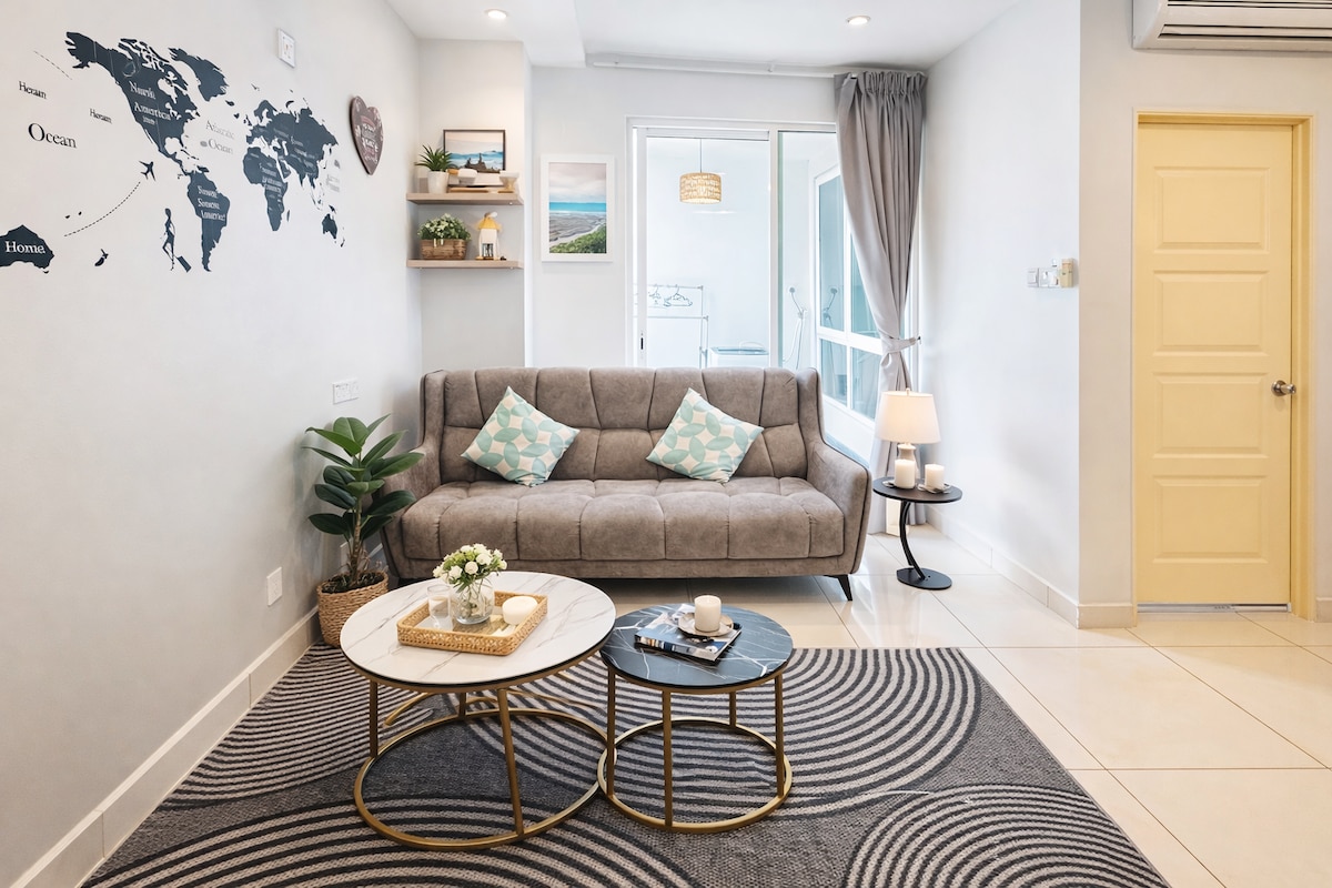 Urban Suites By XW Home Penang • 850 кв. футов, ветреная квартира на высоком этаже. • Вид на море и город • Предоставьте караоке KTV и телевизор, подходящий для семьи и друзей. • Недавно отремонтированный и меблированный. • Полностью кондиционированный • 2 частные автостоянки • Рестораны, кафе, Starbucks, Coffee Bean, Family Mart, 7-Eleven поблизости. • Стратегическое расположение, удобный транспорт в 5 минутах езды от первого моста Пенанг. • 10-15 минут езды (менее 5 км) до причала, стрит-арта и старого города наследия ЮНЕСКО.