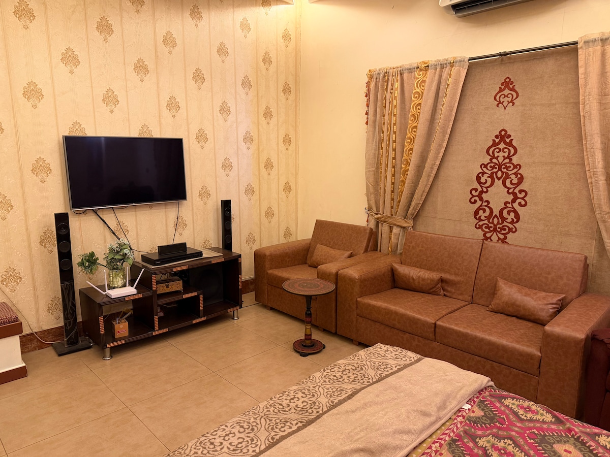 Farmhouse away from city pollution — a peaceful retreat in the City of Nawabs (Bahawalpur). Perfect for families, with spacious rooms, a cozy home theatre, and a large lawn for relaxing evenings. Enjoy free parking for up to 4 cars. Just a 10-minute drive from restaurants and food courts. Birds and friendly animals on-site make it fun for kids. A serene, private spot to unwind and make your stay truly memorable.