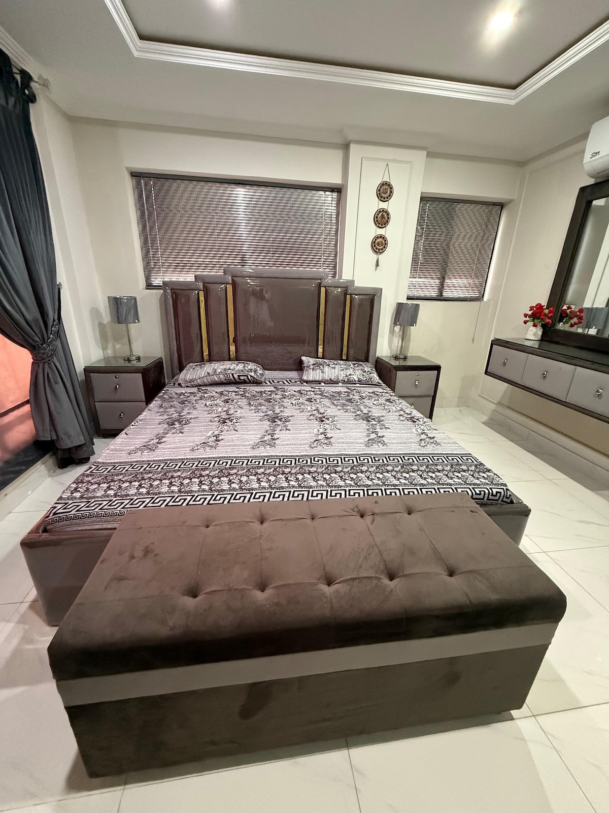 Добро пожаловать в ваш стильный и просторный дом вдали от дома в Лахоре! Эта современная квартира с 2 спальнями тщательно спроектирована для комфорта, независимо от того, едете ли вы по делам, отдыхаете или путешествуете с семьей. Расположенное в престижном районе, оно предлагает все необходимое, а также нотку роскоши, которая вам понравится. ✨ Удобная 2-комнатная квартира ⚡ Роскошная гостиная ✨Бесплатная парковка. ☄️Кондиционер, Wi-Fi, Netflix. ⚡Полностью оборудованная кухня. ✨3. Чистая ванная комната Аэропорт, DHA, торговые центры, исторические места — в нескольких минутах ходьбы