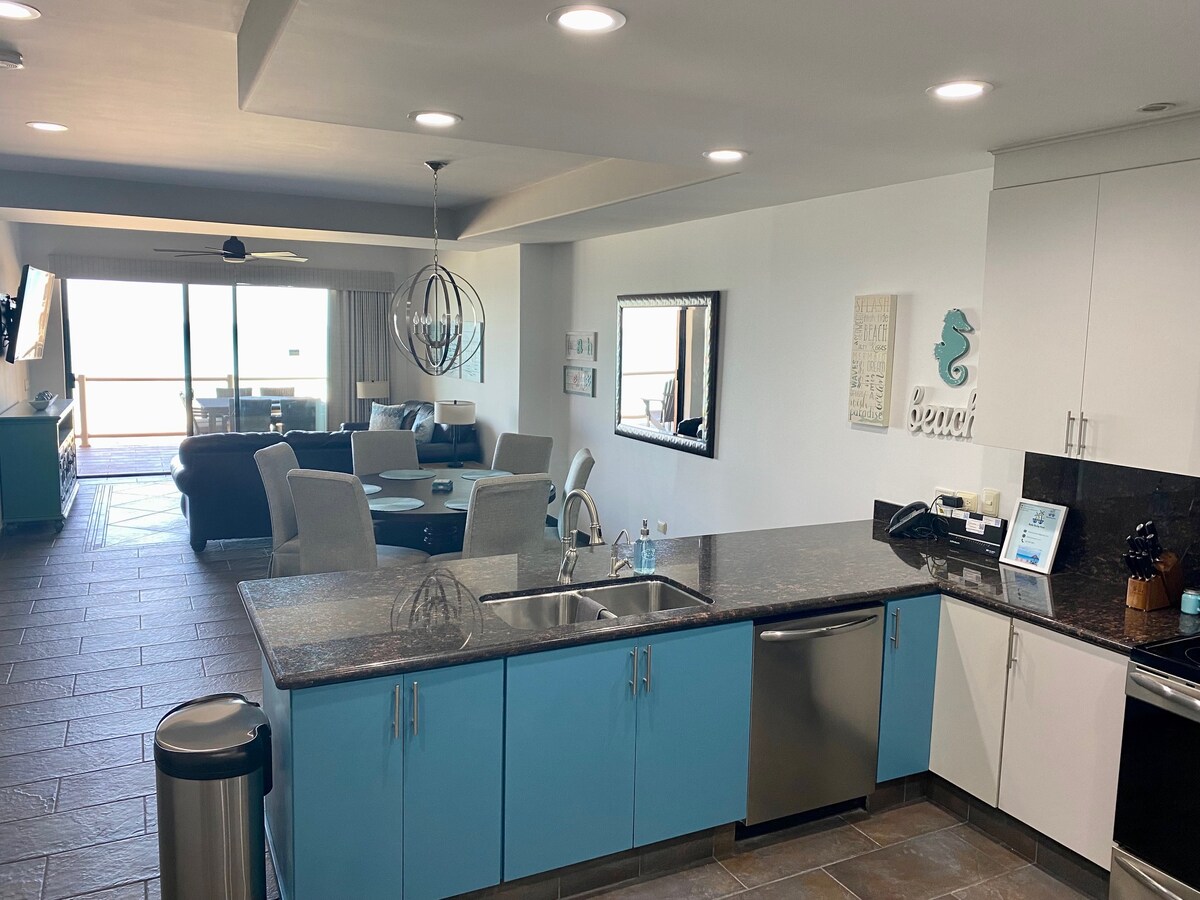 Отдохните в нашем роскошном кондоминиуме 2/2 на первом этапе с потрясающим видом на море Кортеса! Насладитесь собственным балконом с видом на песчаный пляж, где на втором этаже вас ждут захватывающие восходы и закаты. В этом высококлассном кондоминиуме есть главный люкс с выходом на балкон, просторная комната для гостей, высокоскоростной Wi-Fi, три телевизора с плоским экраном, полностью оборудованная кухня, стиральная машина/сушилка, а также прямой доступ к бассейнам, пляжам и барам для купания. Вмещает до 7 гостей (плата за 7-е число). Идеальный отдых на песчаном пляже начинается здесь!