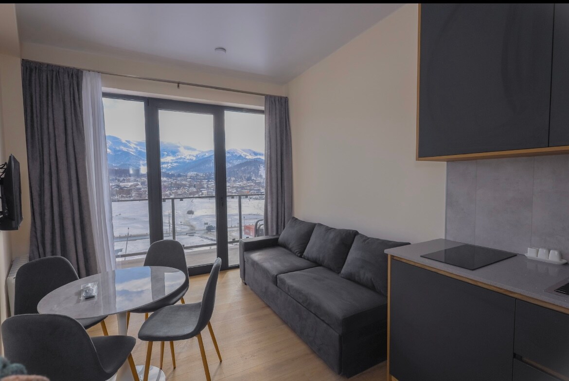 Вам понравится стильный декор этого очаровательного места для проживания,теплое место с прекрасным видом на горы и красотой бакуриани.