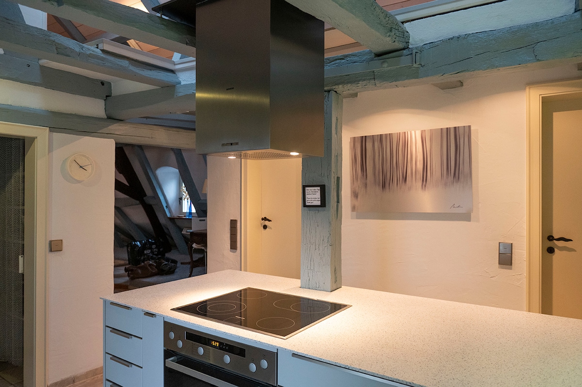 Тихая квартира для отдыха, полностью отремонтированная в феврале 2022 года в центре старого города Дизер. В нашей высококачественной меблированной квартире есть полностью оборудованная кухня с холодильником и кофемашиной, новая ванная комната с душем и туалетом, а также две спальни, здесь могут разместиться до 4 человек. Ваш загородный дом расположен под Diezer Grafenschloss. Кафе, рестораны, органический магазин и магазины находятся очень близко.