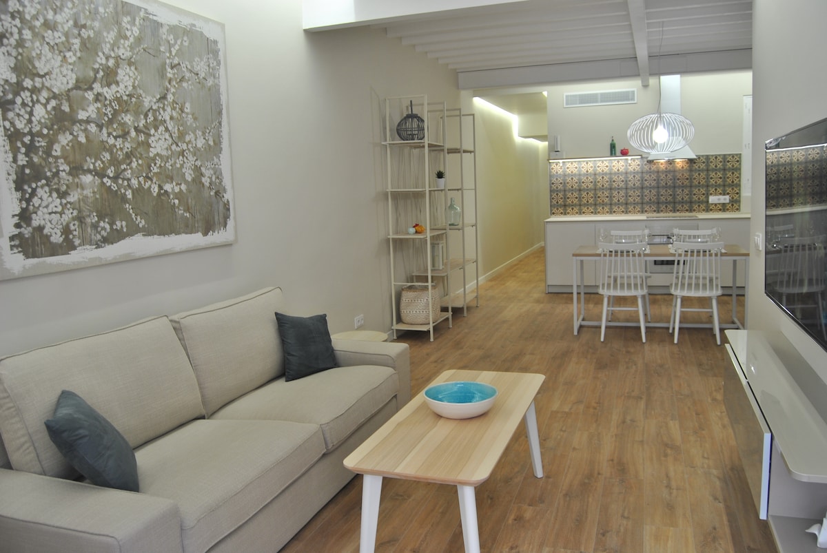 Этот люкс идеально подходит для пар, одиночных путешественников или небольших семей, ищущих спокойное, стильное жилье в Пальме. К услугам гостей спальня, гостиная, полностью оборудованная кухня и залитый светом французский балкон. Кровать размера Queen size с постельным бельем премиум-класса из органических волокон, а диван-кровать удобен для взрослых. Расположенная в центре Пальмы, недалеко от собора, лучших магазинов и гавани, она предлагает дизайн, комфорт и тепло в бутик-стиле. В том же здании есть еще 6 квартир, все принадлежат Ocho Suites.