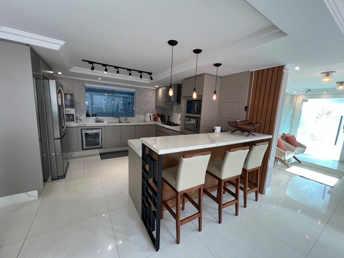 Большой, суперновый и просторный дом в B. Камбориу, недалеко от самых красивых пляжей: Ларанжейрас, Такуарас, Эсталейриньо, а также центрального пляжа! Всего в 7 км от парка аттракционов MultiParque. Есть 2 очень хорошо распределенных этажа, с 3 ванными комнатами, новыми и супер удобными кроватями, туалетом, прачечной, гаражом на 3 машины, барбекю, костровищем и многим другим. Интегрированные, просторные и светлые помещения, идеально подходящие для тех, кто ищет комфорт и спокойствие. Жилье с кондиционером, идеально подходит для отдыха.