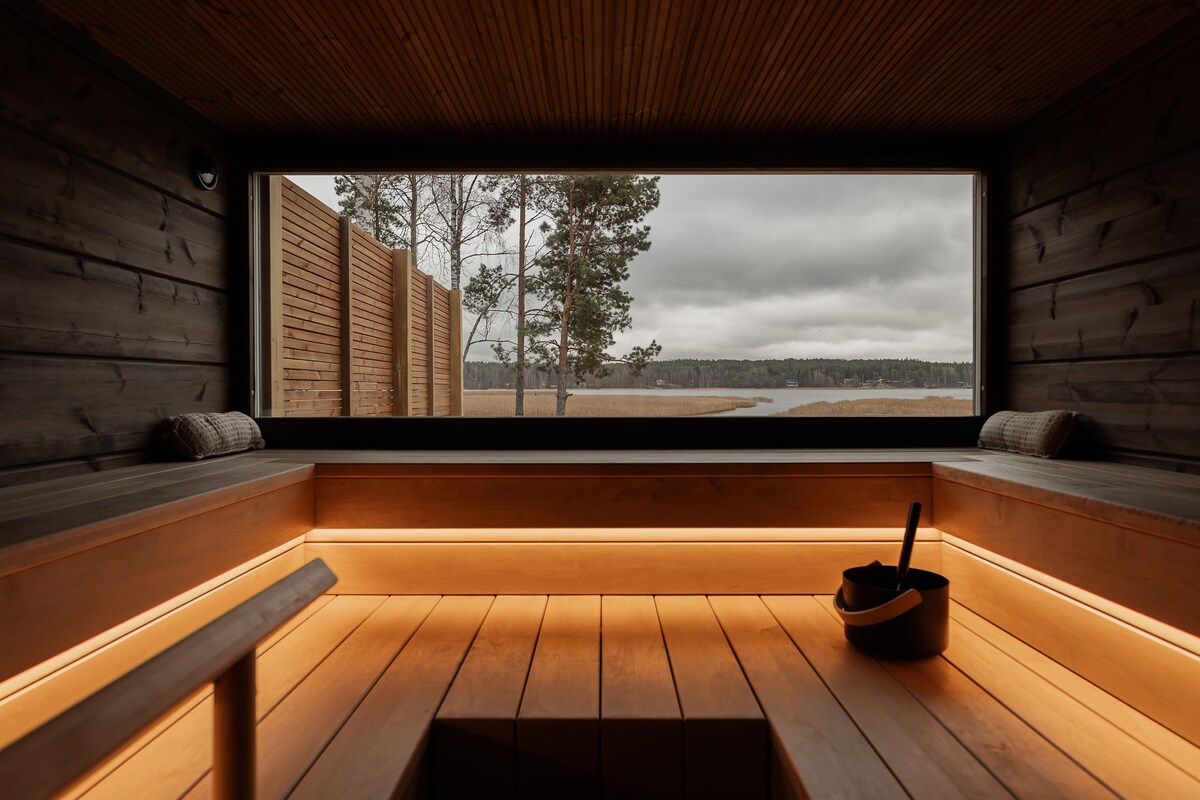 Потрясающий дом у озера 6B2B с сауной, джакузи и барбекю