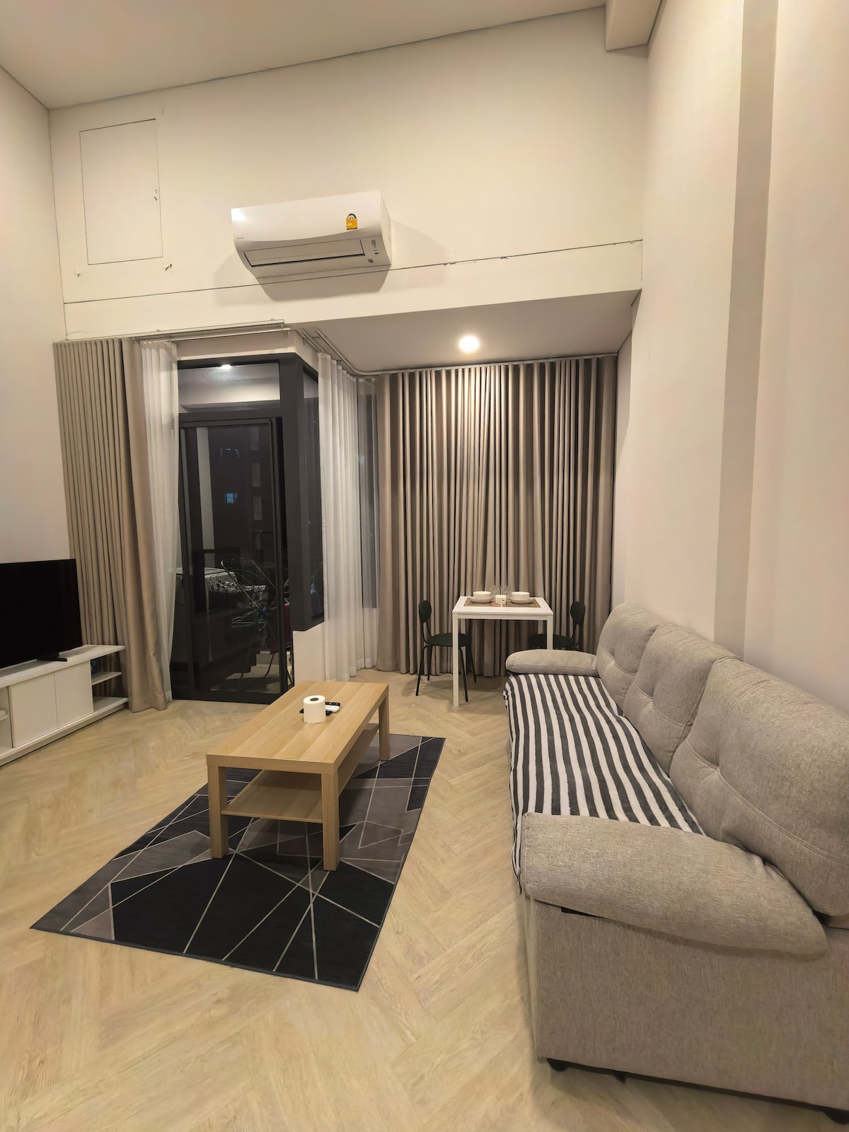 Мой дом — это квартира-лофт премиум-класса, сданная в 2024 году, расположенная в центре района Rama 9-Ratchada. Добро пожаловать в ваш второй дом!Этот стильный и комфортабельный апарт-отель расположен в здании C оживленного Cassia Rama 9, недалеко от RCA, полностью меблирован, с просторной гостиной, дуплексным лофтом и современной кухней, оборудованной всем необходимым, чтобы вы могли наслаждаться всеми удобствами дома.Полностью частная квартира с одной спальней, одной гостиной, одной ванной комнатой, одним этажом, который представляет собой гостиную, кухню, туалет, кладовую. Один этаж площадью 33 квадратных метра, второй этаж с спальней площадью 15 квадратных метров.