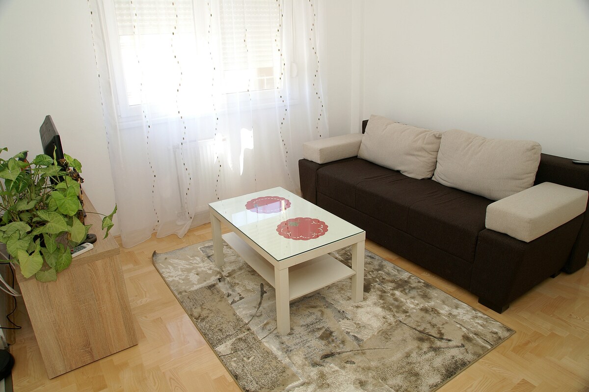 Снимайте полностью меблированную и оборудованную квартиру в день или дольше. Она расположена на первом этаже недавно построенного здания по адресу Filipa Macura 21. Предоставление полукрытого парковочного места. Конструкция квартиры состоит из гостиной (диван-кровать) с кухней и столовой, спальни (двуспальная кровать), ванной и балкона. Квартира оборудована кондиционером. Интернет, кабельное телевидение ... Максимальная вместимость - 2 + 2 человека. Цена аренды на несколько дней по предварительной записи. Контактное лицо:+38765601155 Лука